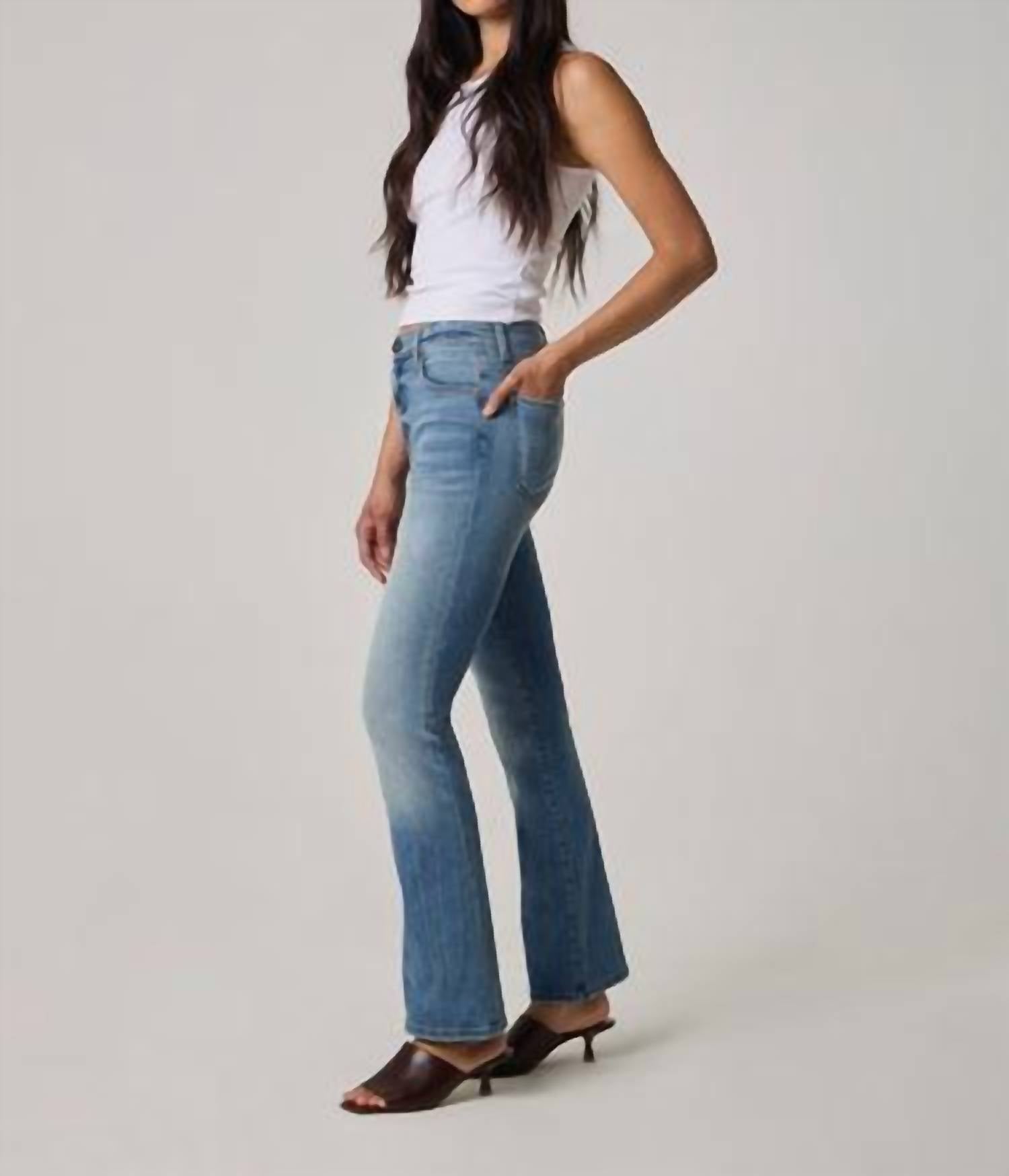 Fit to perfection, we love these high-waist jeans and you will too. Step into 90s fashion with the Edyson Grant High Rise Flare Jeans in Vintage Lorenzo, a perfect addition to your spring wardrobe. Crafted from a textured cotton blend, these jeans showcase a high-waisted design with an 11-inch rise and a 31-inch inseam for a flattering slim-fit silhouette. Featuring functional pockets and a flared leg for added style, these jeans come with a secure button closure. Easy care with machine wash and tumble dry instructions ensures convenience for your dynamic lifestyle.