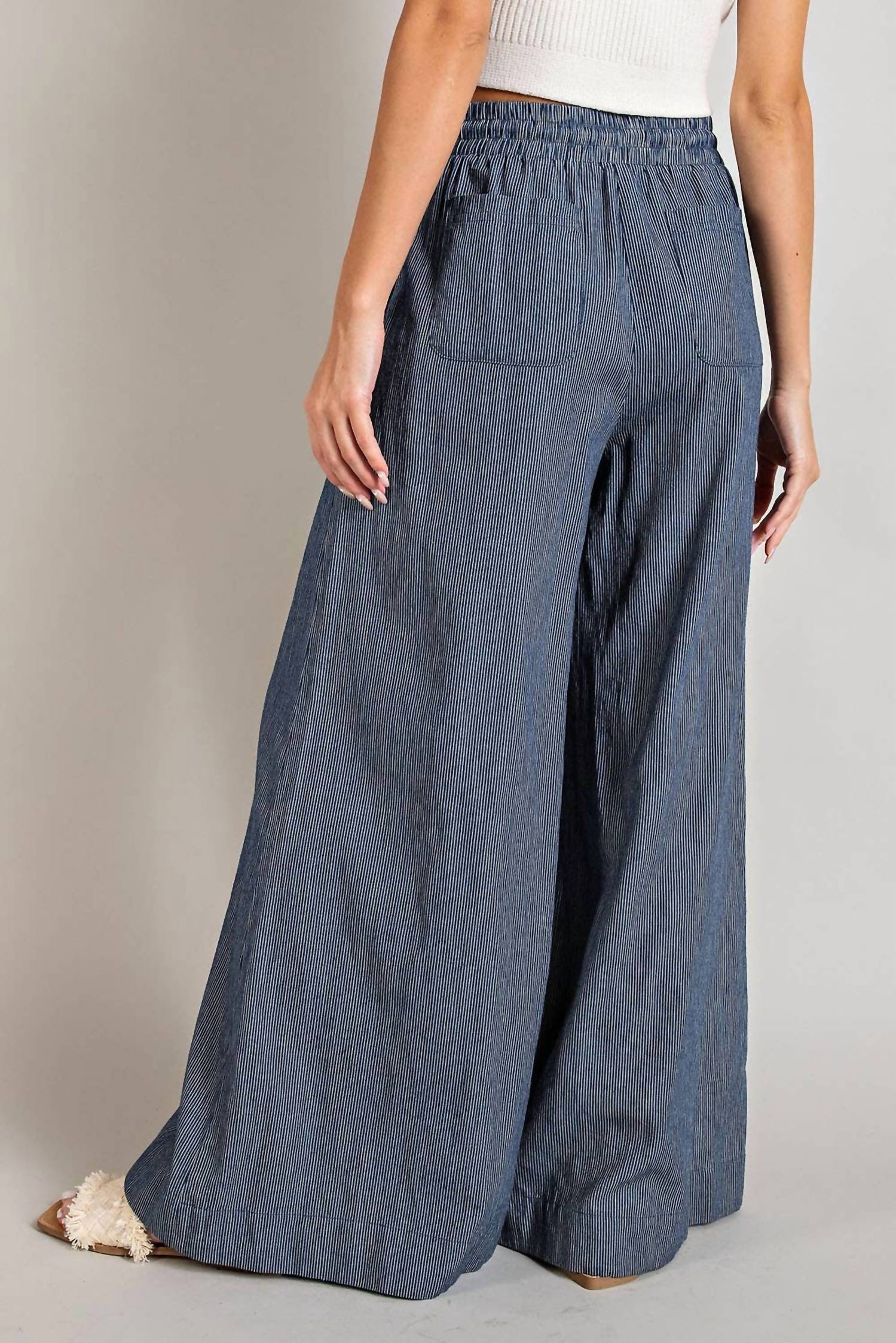 Elevate your wardrobe with the Lawson Wide Leg Pants by ee:some, designed for a chic yet comfortable silhouette. Crafted from 100% cotton, these denim-hued pinstripe pants feature a convenient tie closure and a fashionable wide leg style. Embrace the ease of movement and built-in pockets that add both function and flair to this versatile piece. Ideal for women seeking a plus-size fit, these pants effortlessly blend style with practicality.