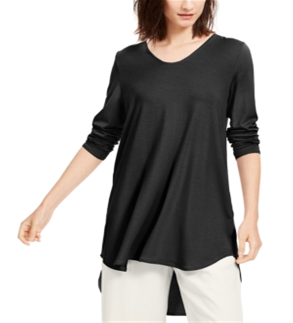 Eileen Fisher Women's Long Sleeve Jewel Neck Tunic Top Maroon Size XS