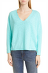 Eileen Fisher Women's V Neck Organic Linen & Cotton Sweater Blue Size Medium