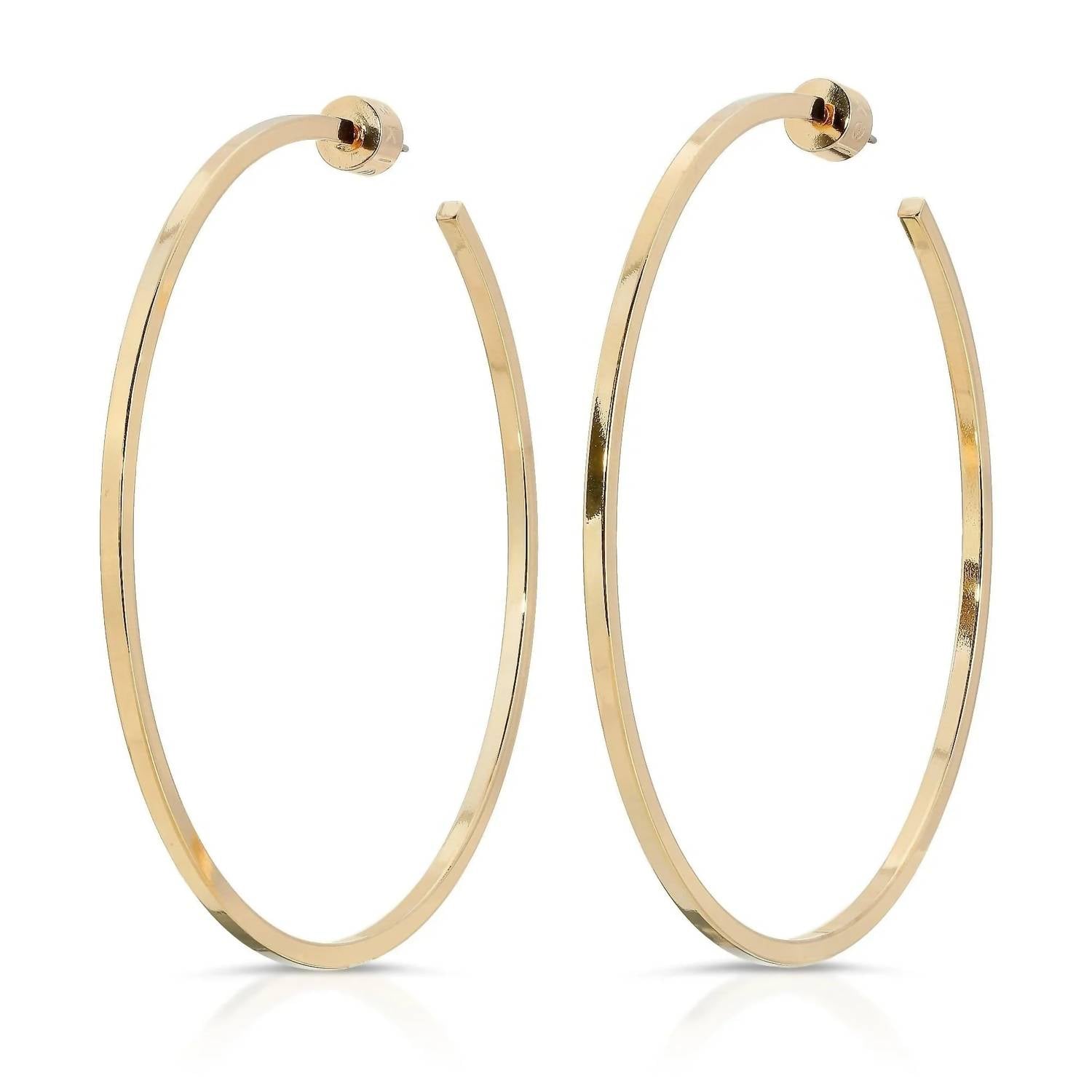 Classic earrings that will take you from season to season. Introducing the Women's 2.5" Ava Hoops by Eklexic, a perfect blend of modern design and sustainable craftsmanship. These fine earrings feature a standout 0.080" thickness and a 2.5" diameter, crafted from recycled brass with a warm 14K Yellow Gold finish. Ideal for the modern, conscious consumer, these hoops effortlessly elevate your jewelry collection with their contemporary flair. Designed for versatile styling, they seamlessly pair with other hoop styles or necklaces.