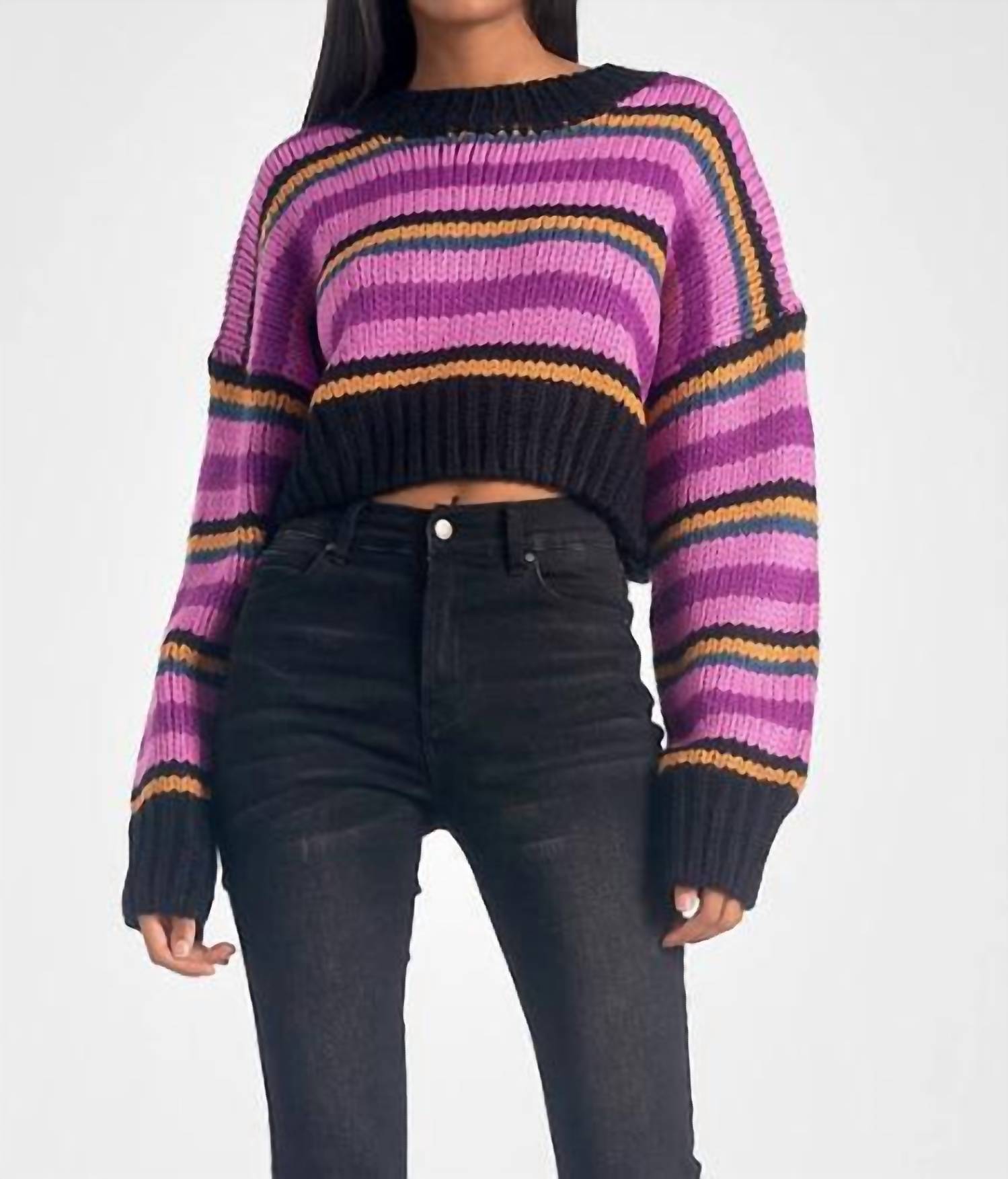 The ultimate go-to sweater, expertly crafted to provide the perfect combination of warmth and style. Its classic design and soft fabric make it a must-have addition to your wardrobe. Step into the spotlight with the ELAN Striped Cropped Sweater, a vibrant piece that embodies playful sophistication. This women's sweater features long sleeves and is crafted entirely from acrylic, ensuring cozy comfort through its purples stripes. The sweater's pull-on design adds convenience, while the crewneck and cropped fit make it a favorite for fall's maximalist trend. Care instructions are straightforward: machine wash up to 30°C inside a laundry bag, avoid chlorine bleach, and refrain from tumble drying or ironing.