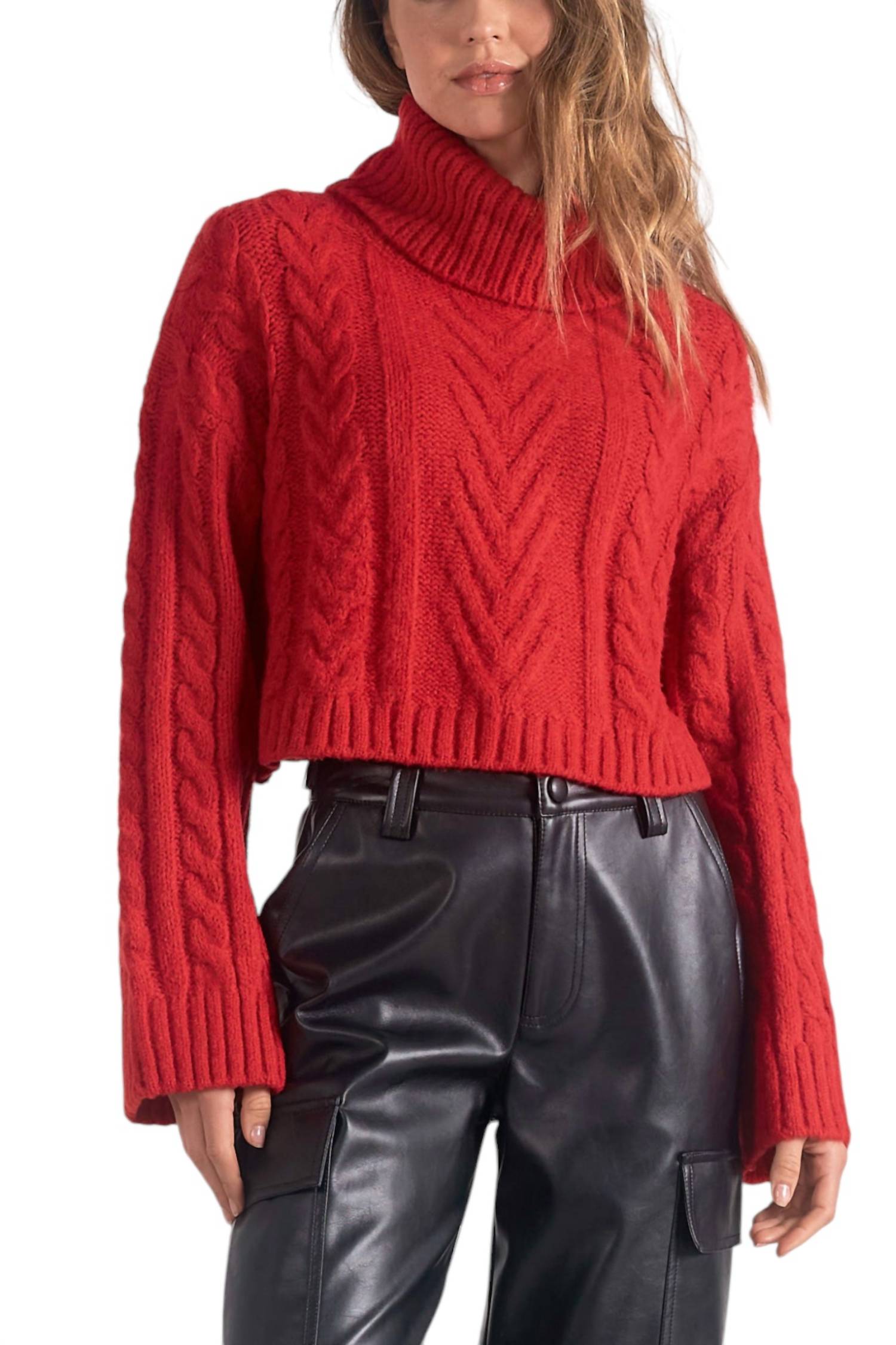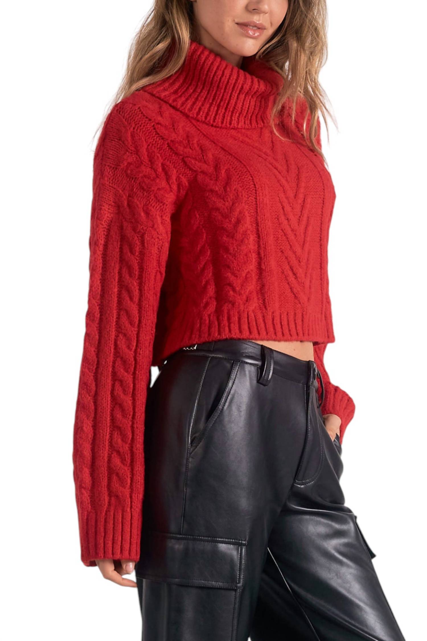The TURTLENECK CROPPED TOP by ELAN is a striking red statement piece perfect for any wardrobe. This long sleeve crop top is crafted from textured acrylic, providing both comfort and style. With a chic turtleneck neckline, it offers a modern twist to a classic silhouette. Designed without closures, this pull-on top ensures a seamless fit for effortlessly chic ensembles.