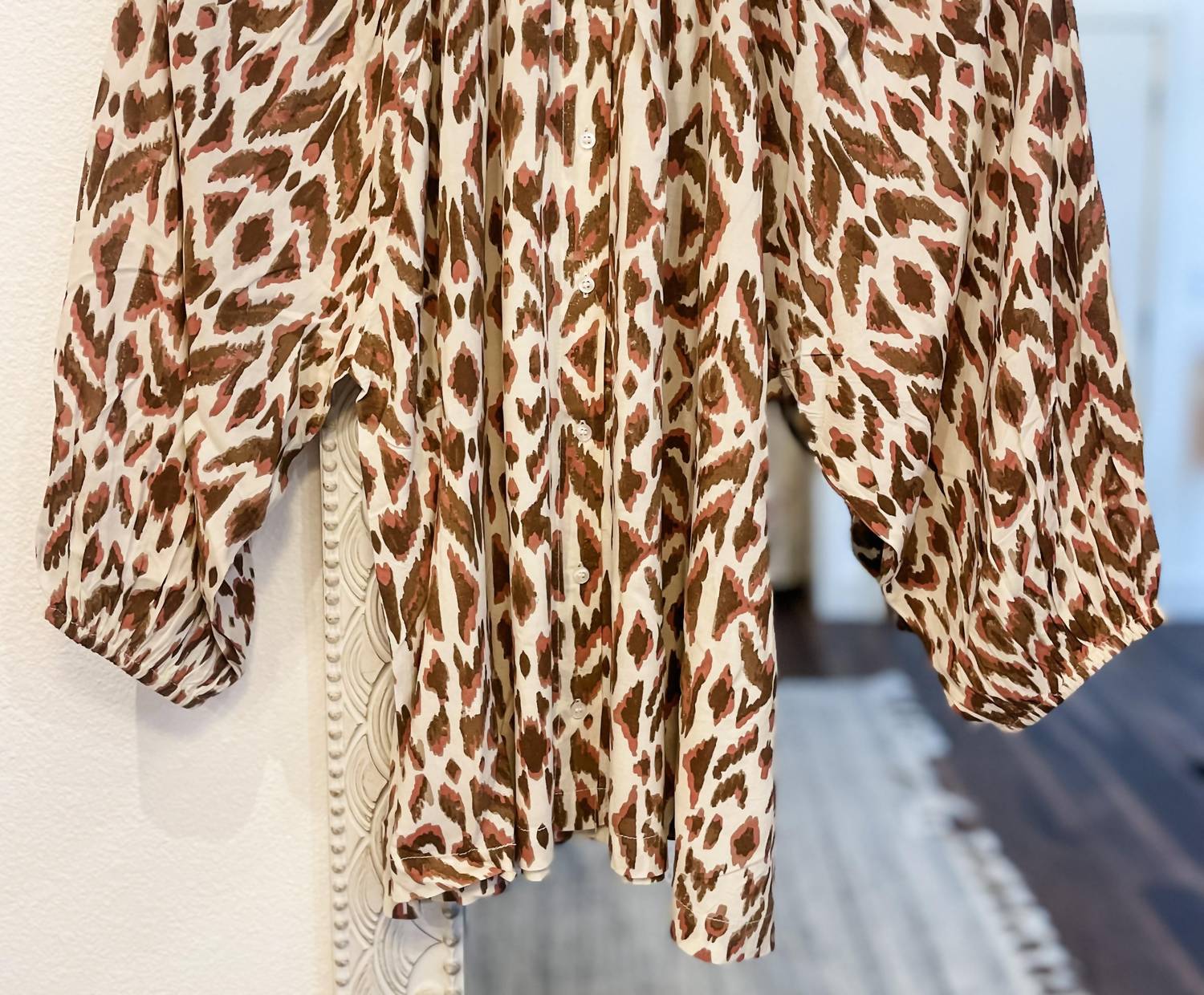 A versatile blouse that works from desk to dinner! Introducing the Meredith Blouse by ELAN, a vibrant addition to your wardrobe with a lively patterned design. It features three-quarter sleeves and is made from 100% crisp cotton, offering both comfort and style with its split neckline and cropped length with tie detailing. Originating from a relaxed fit, the blouse closes with a button front highlighted by button cuffs. Care for this garment by hand washing and line drying to maintain its quality.