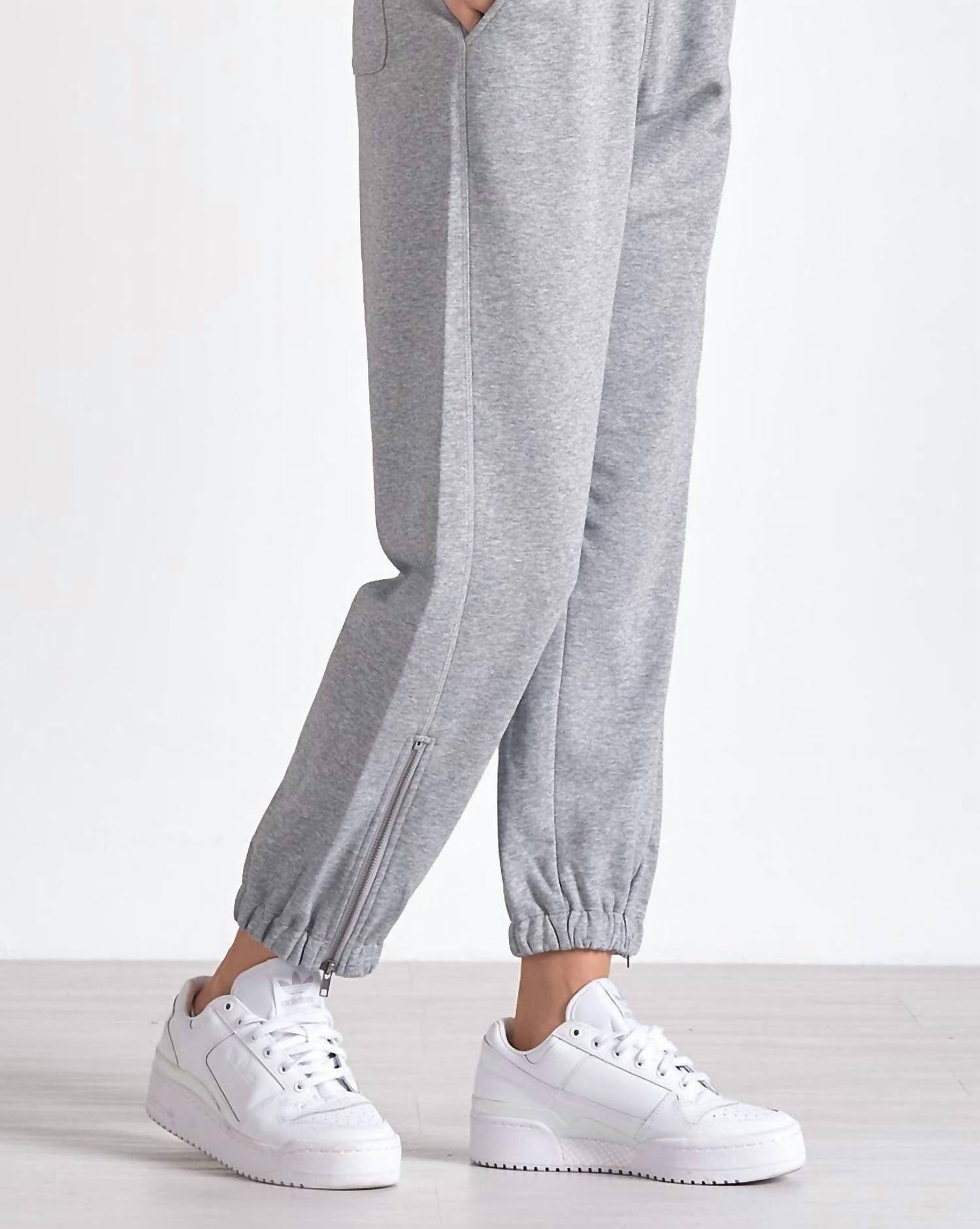 No gym necessary for these cool-girl joggers. Elevate your loungewear with the ELAN Zipper Pants Jogger in Heather Grey, crafted from 100% Cotton for ultimate comfort. These French Terry joggers feature a pull-on closure with an elastic waistband, providing a relaxed yet secure fit. The zipper leg detail adds unexpected edge and modern flair, while the cuffed legs ensure a sleek silhouette. Perfect for activewear, these joggers also come with functional pockets for added convenience.