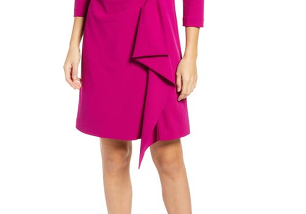 Rich Pink Hue | Elegant Ruffle Design | Size 6 | Lightweight Material | Cocktail Dress | Nordstrom Exclusive | Eliza J Brand | Knee-Length | Feminine Silhouette | Side Zip Closure | Sleeveless Design | Fitted Waistband | Classic Round Neckline | Polyester Construction | Dry Clean Only | Ideal for Special Occasions