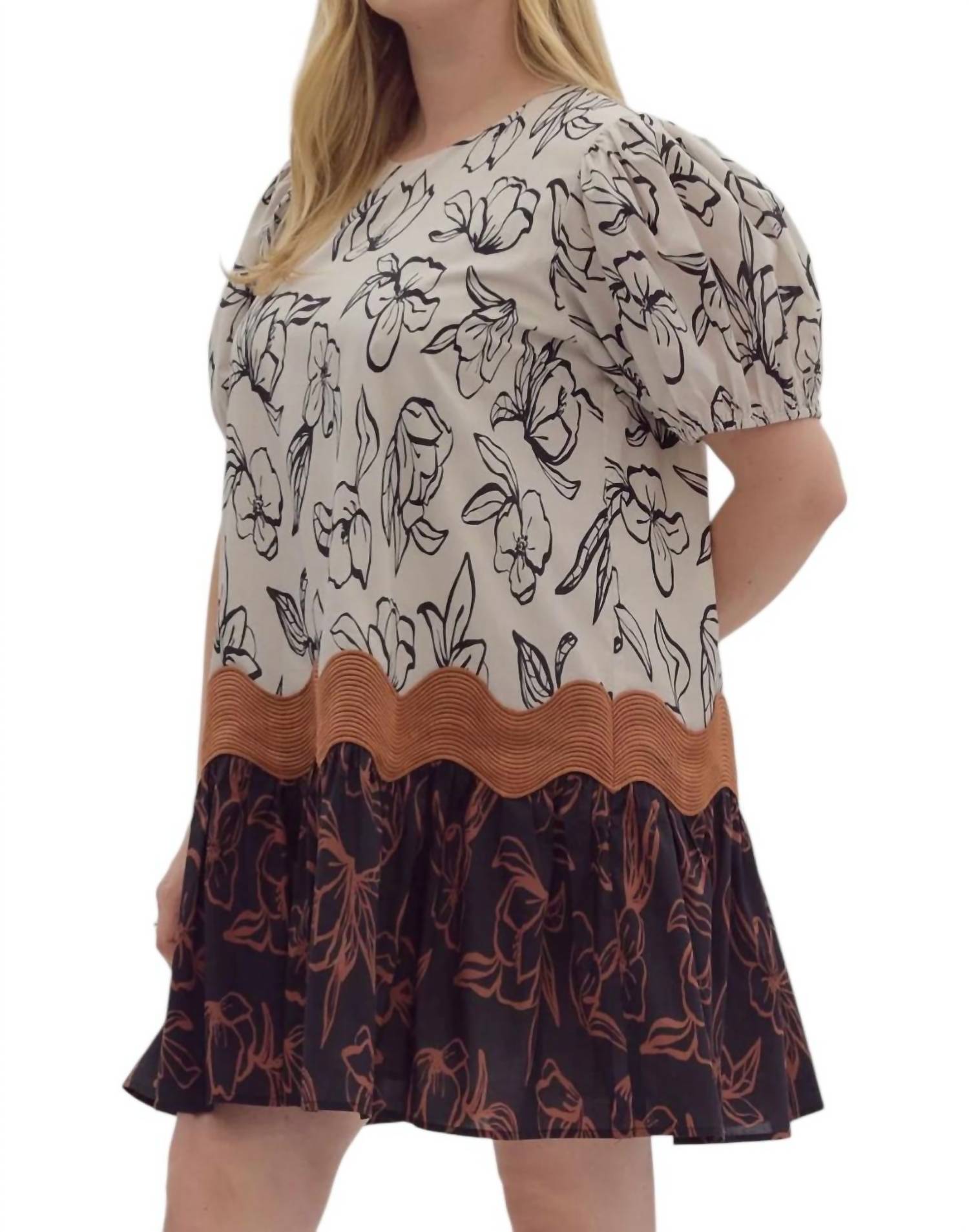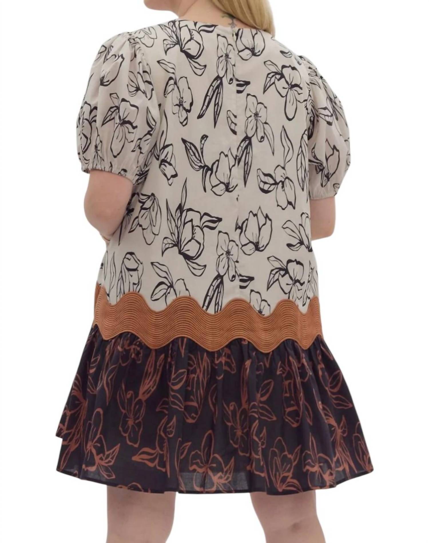 Playful yet chic addition to your wardrobe. Mini shift dress showcases a vibrant floral print. Complemented by a crewneck and charming puff sleeves. With a composition detail omitted. Lined and non-sheer woven fabric ensures a lightweight feel. Designed with a convenient back zip closure and elastic cuffs for a refined finish. Promises a true-to-size fit, though it offers no stretch.
