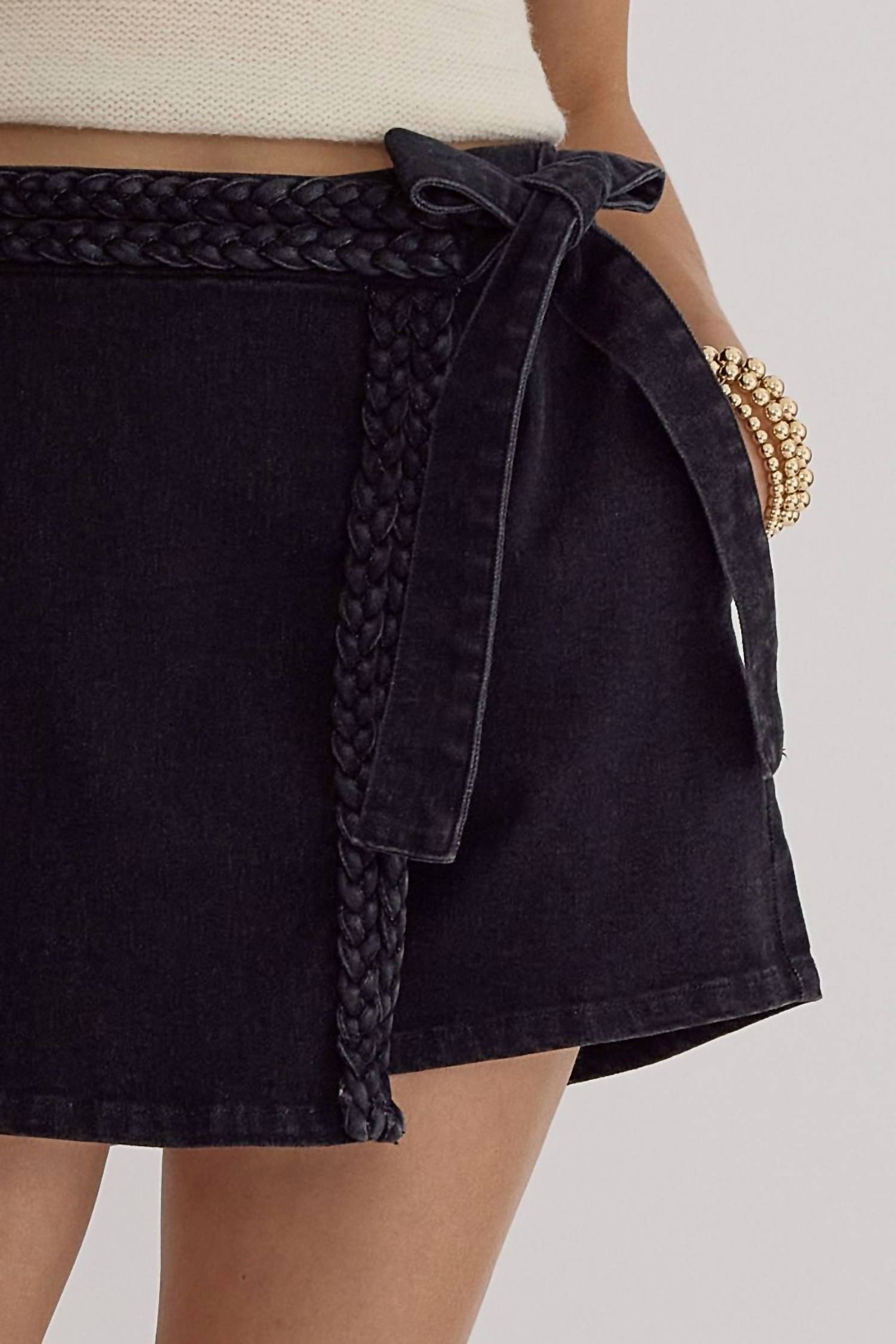 A skirt that you can do just about anything in? We love a good skort, especially this one! Discover the Braided Skort by Entro, an essential addition to any wardrobe with a sleek black hue and solid pattern. This women's skort is crafted from a comfortable cotton blend and features a convenient pull-on closure. It offers practicality with pockets and is designed with a uniform length of 14" across all sizes. Waist measurements are 26" for small, 28" for medium, and 30" for large.