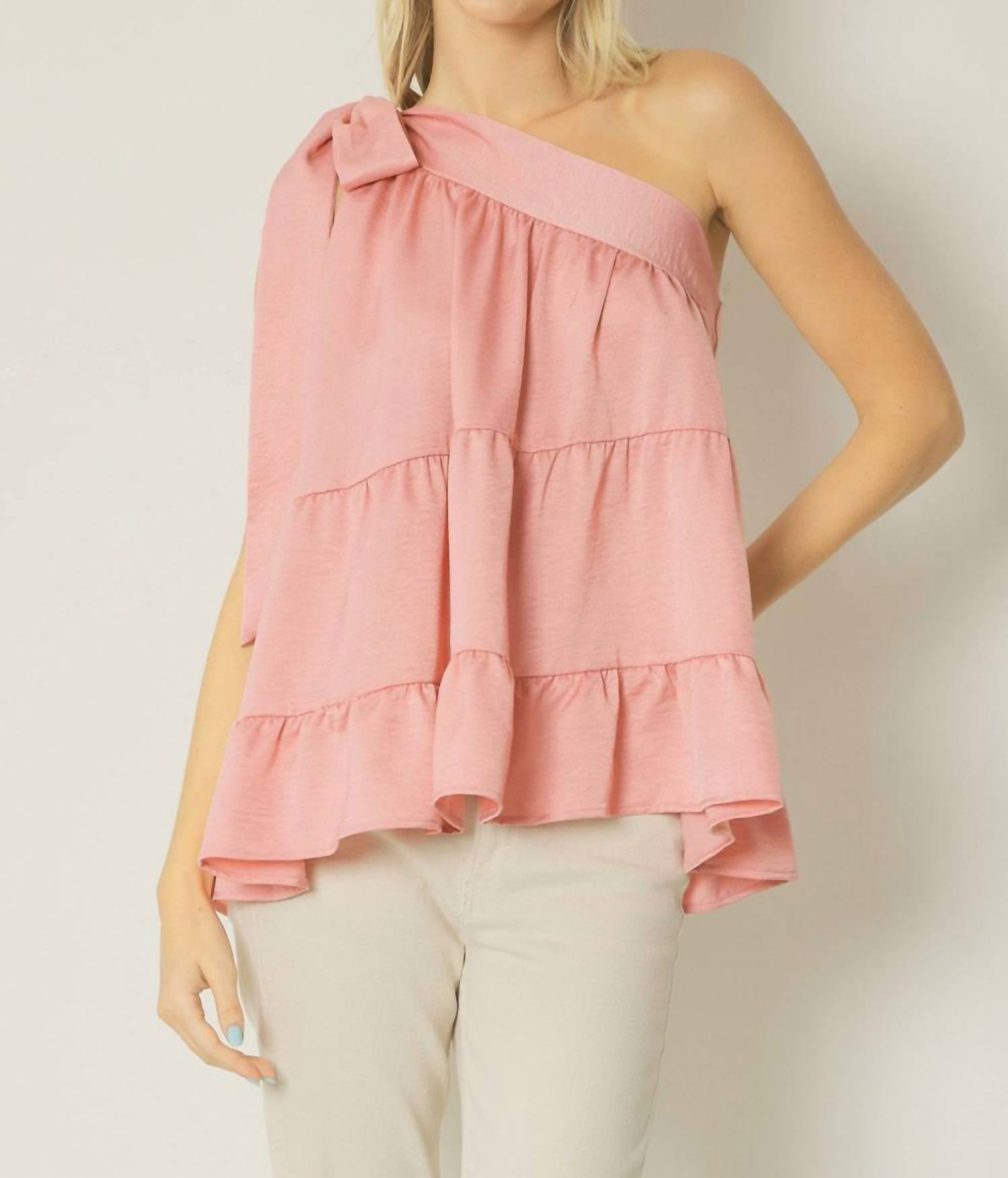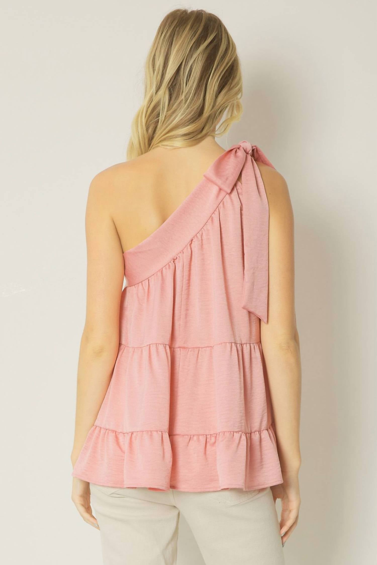 A timeless blouse that will never go out of style.Solid satin tiered one-shoulder top featuring self-tie detail at shoulder. Unlined. Woven. Non-sheer. Lightweight. Fabric: 100%POLYESTER