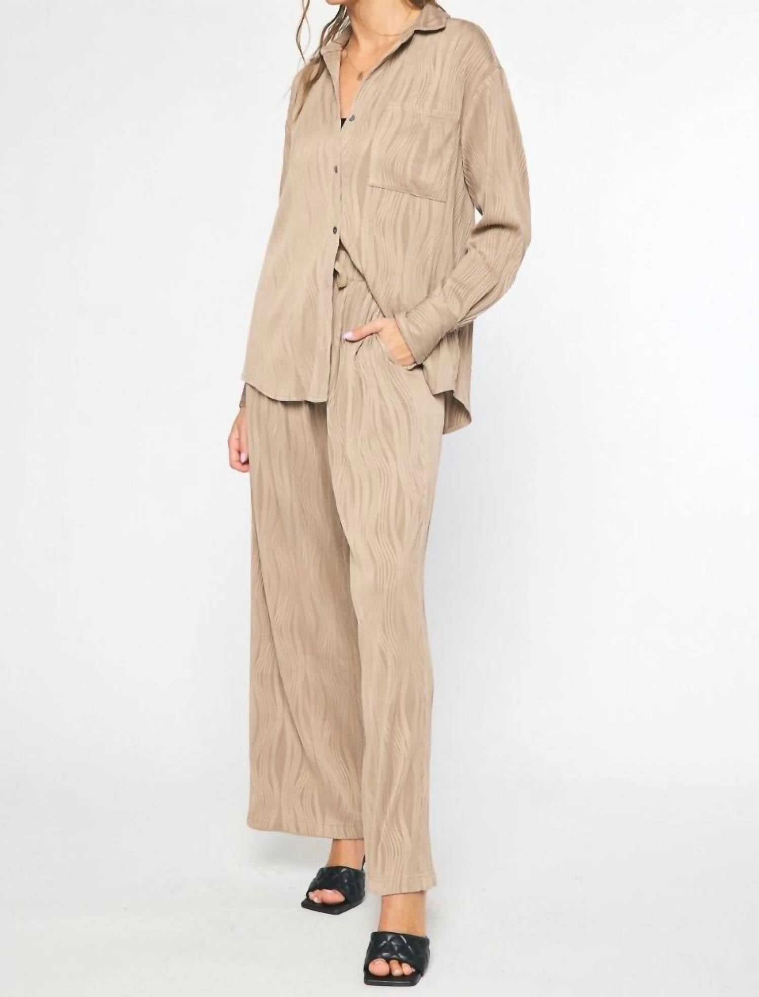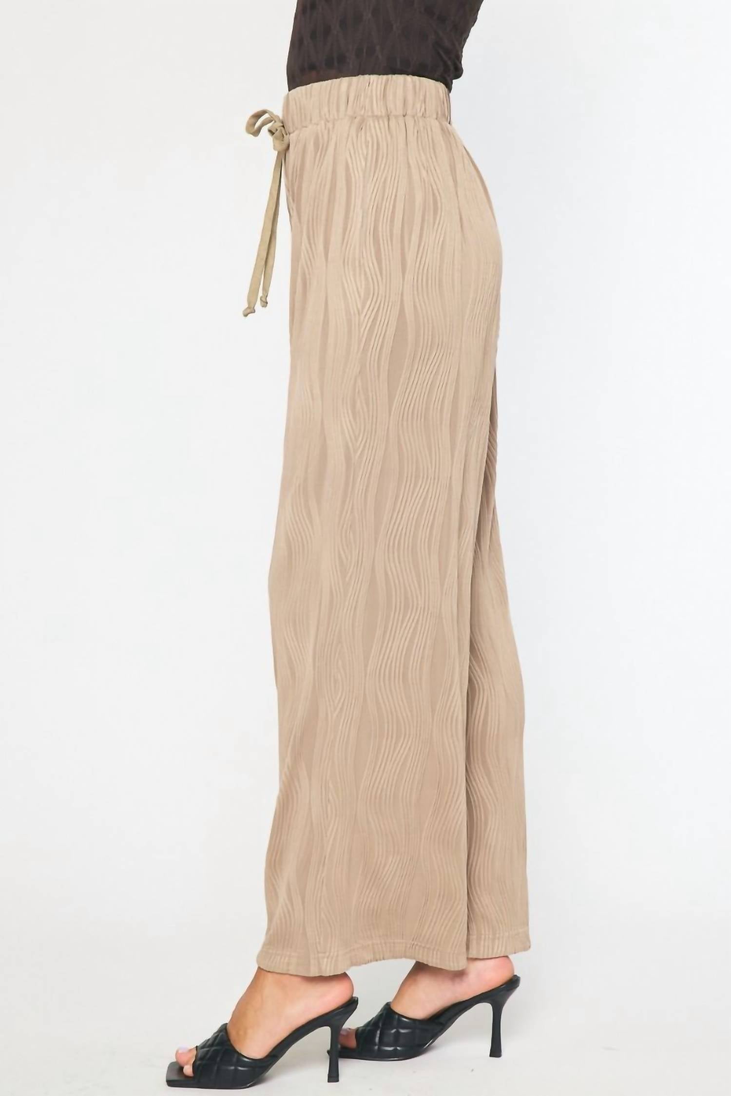 Textured. High-waisted. Wide-leg pants. Elastic drawstring waist. Pockets at sides. Lined. Woven. Non-sheer. Lightweight.