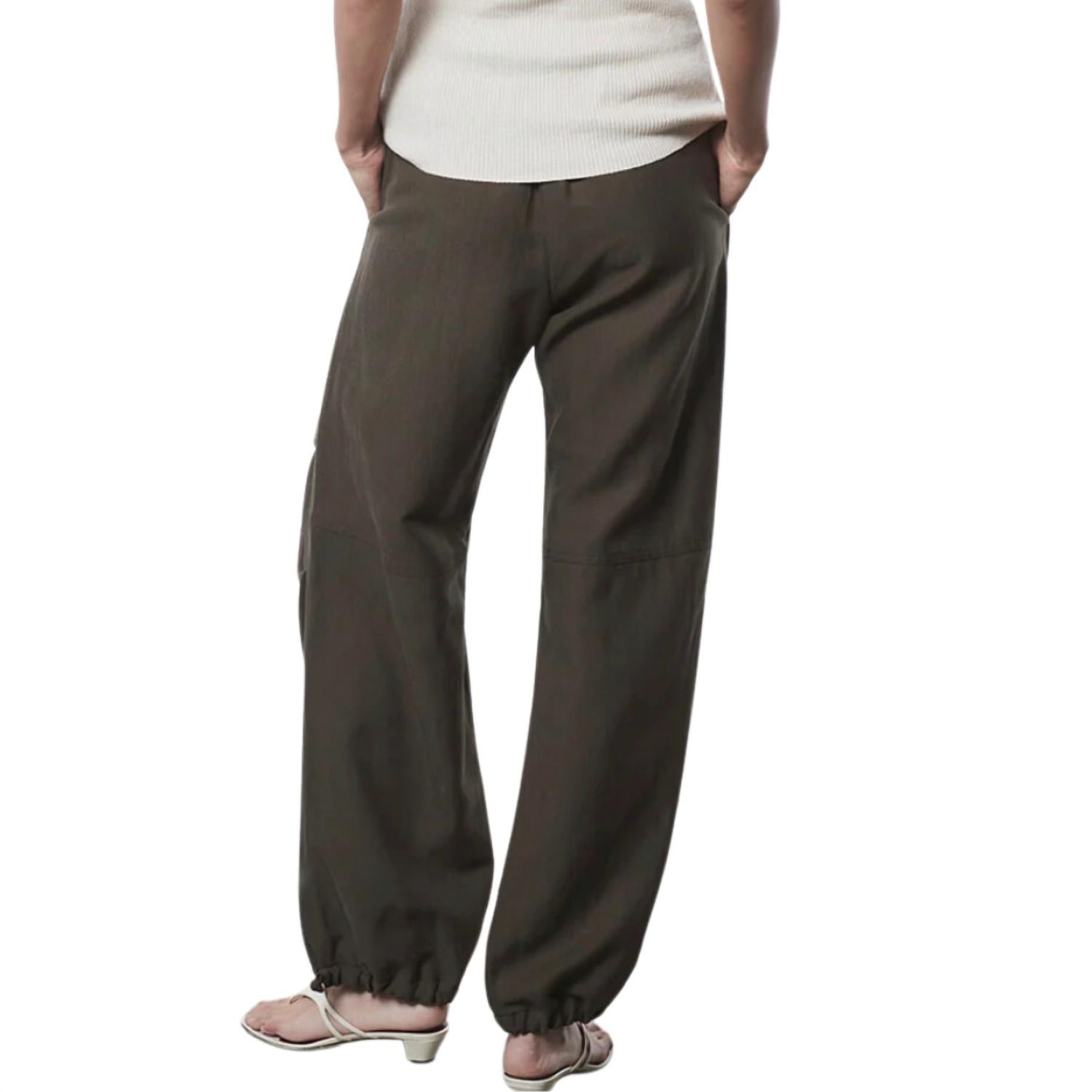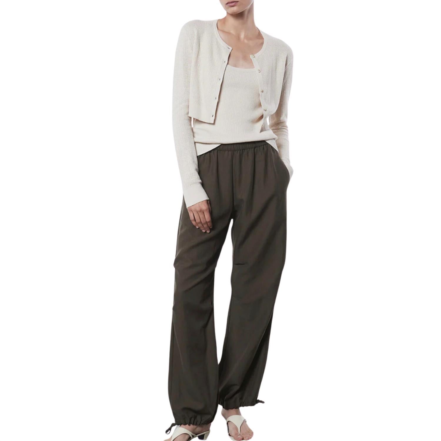 No gym necessary for these cool-girl joggers. Enza Costa Twill Flight Pant Tencel, Linen, Cotton in Military Pull-on Pants Mid Rise Side Pockets Adjustable Ankle Ties Cupro Lining Inseam 27" True to Size Made in the U.S.A.