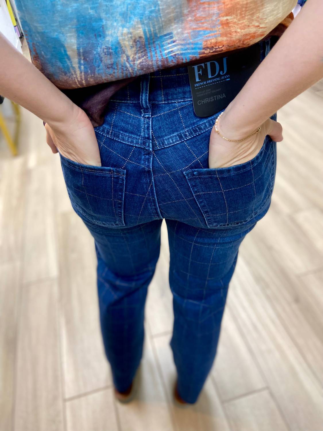 These must-have jeans are fit to perfection. Elevate your casual wardrobe with FDJ's Squares Relaxed Jeans, perfect for vacation settings or a laid-back streetwear trend. Featuring a vibrant geometric print on a light wash, these high-rise straight-leg jeans offer a relaxed fit that's true to size with added stretch. Crafted from a cotton blend composed of 66% cotton, 3% viscose, 30% polyester, and 1% elastane, they ensure comfort and durability. Practicality meets style with button closure at the waist and functional pockets.