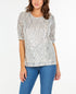 Fever Women's Rouched Short Sleeve Sequin Top White Size Large