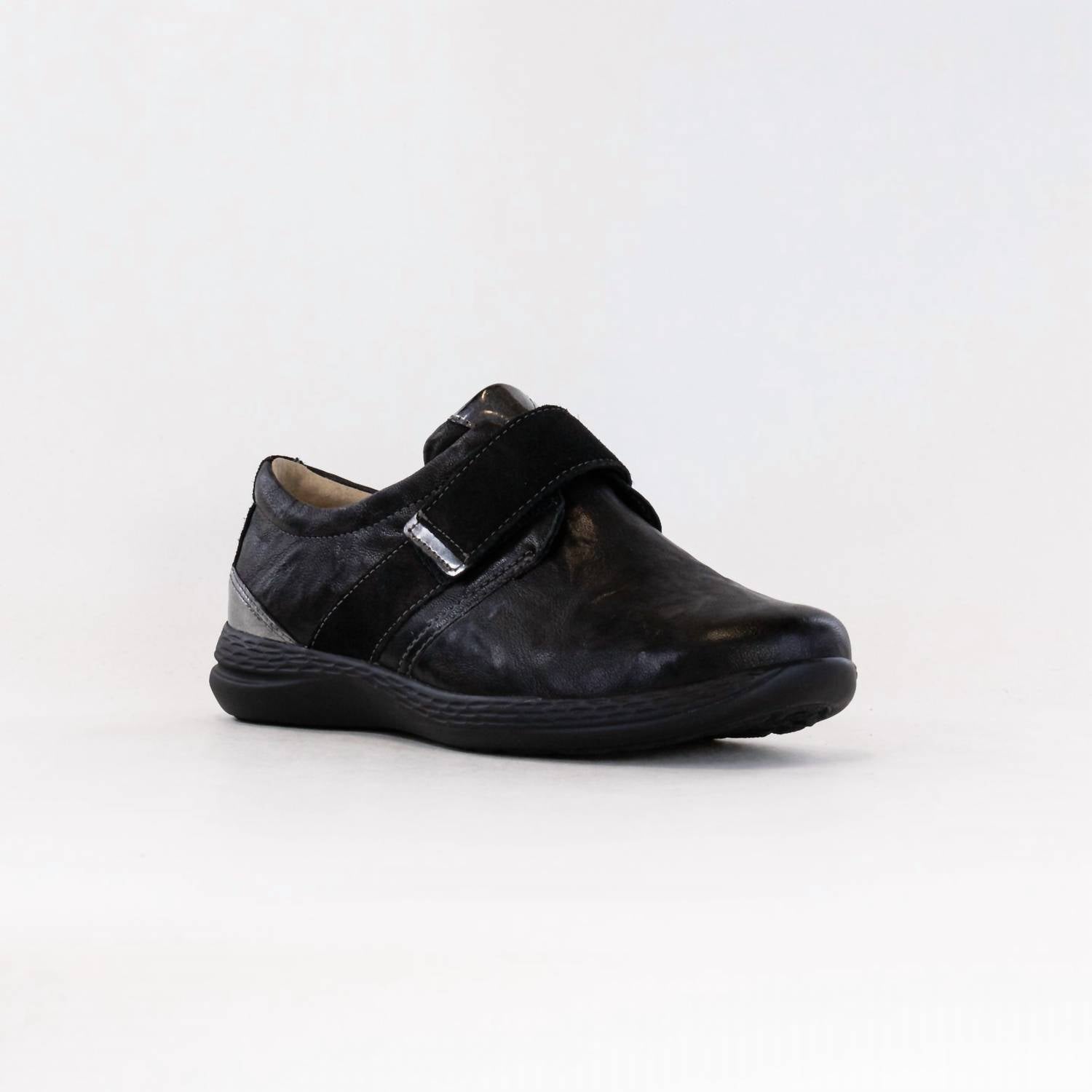 Cute, functional, and comfortable. These sneakers check all the boxes. Introducing the Women's Hi Energy Masha Shoes by Fidelio, a modern sneaker crafted from summery black leather. Designed with a flexible and ultralight sole, these shoes feature an innovative Energy sole for excellent cushioning and slip-resistant properties, making them ideal for fatigue-free walking. They include a removable cork footbed and breathable leather lining, perfect for accommodating full orthotics. With a 28mm heel height and a multistretch insert, these shoes are perfect for spring dinner parties and workwear occasions.
