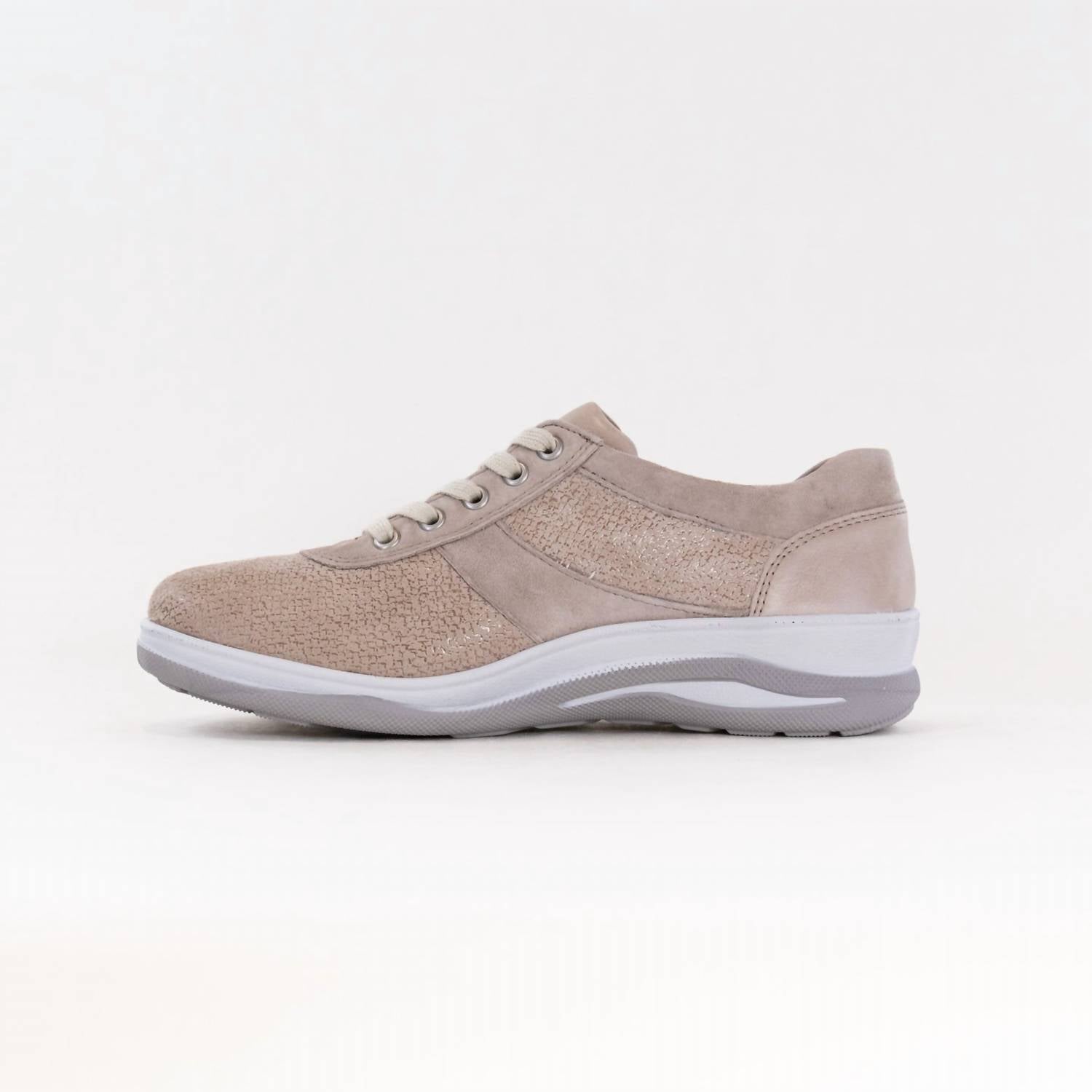Introducing the Fidelio Women's Multistretch Mitzy Shoes, a perfect blend of comfort and style for any minimalist wardrobe. These sneakers in NOCCIOLA KOMBI feature a zipper and lace closure, stretchable and seamless forefoot uppers, and leather linings for a sophisticated look. They are designed with a removable natural cork insole and an air cushion polyurethane sole, creating a soft tread with excellent grip. With a round toe, H width, and flat heel height, these shoes are ideal for full orthotics and perfect for spring dinner parties or Thanksgiving events.