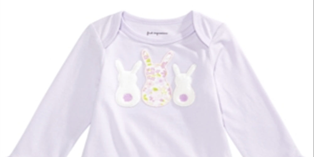 Adorable fuzzy bunnies take the stage at the front of this bodysuit from First Impressions| the perfect pick for cozy cuddles.| Crewneck; snap closures at bottom| Bunnies motif at front| | Shell; cotton/spandex; trim; polyester| Machine washable