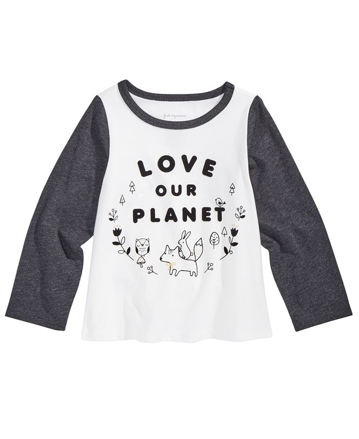 Cute and casual. Woodland creatures add sweetness to First Impressions' colorblocked cotton T-shirt.| Crewneck | Colorblocked at sleeves| Graphic print at front| | 100% cotton| Machine washable