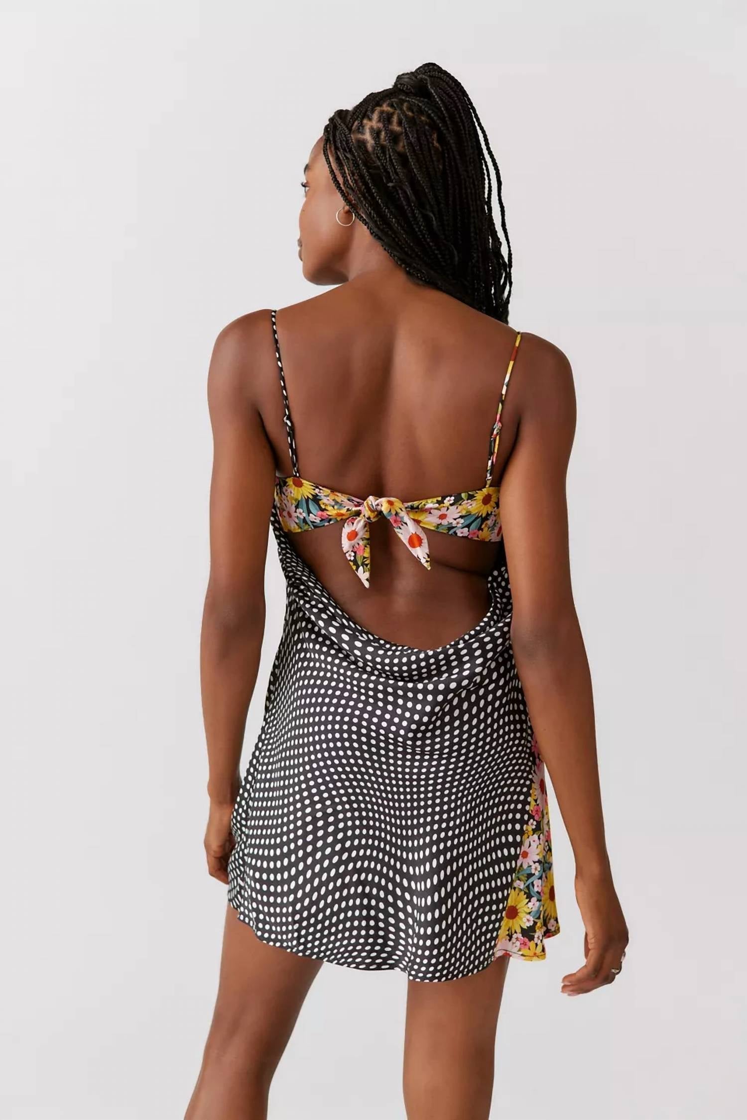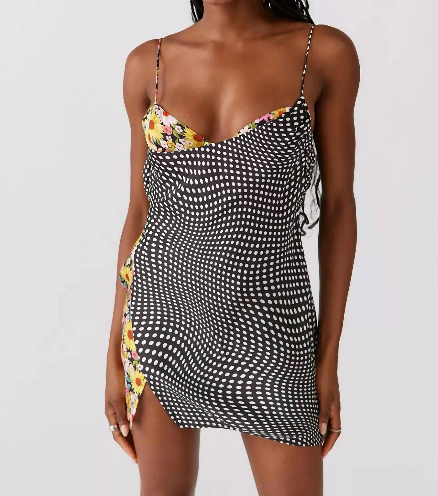 A short and breezy dress for those warmer days. Elevate your vacation wardrobe with the Anya Mini Dress by For Love & Lemons, a darling for summer occasions. This sheath silhouette features spaghetti straps and a chic sweetheart neckline. Crafted from a 50% Ecovero and 50% Viscose blend with mixed prints and polka dot patterns, it boasts a cross-over design with an underwire bra for a stunning fit. Closure: Convenient zip closure. Care: Hand wash.