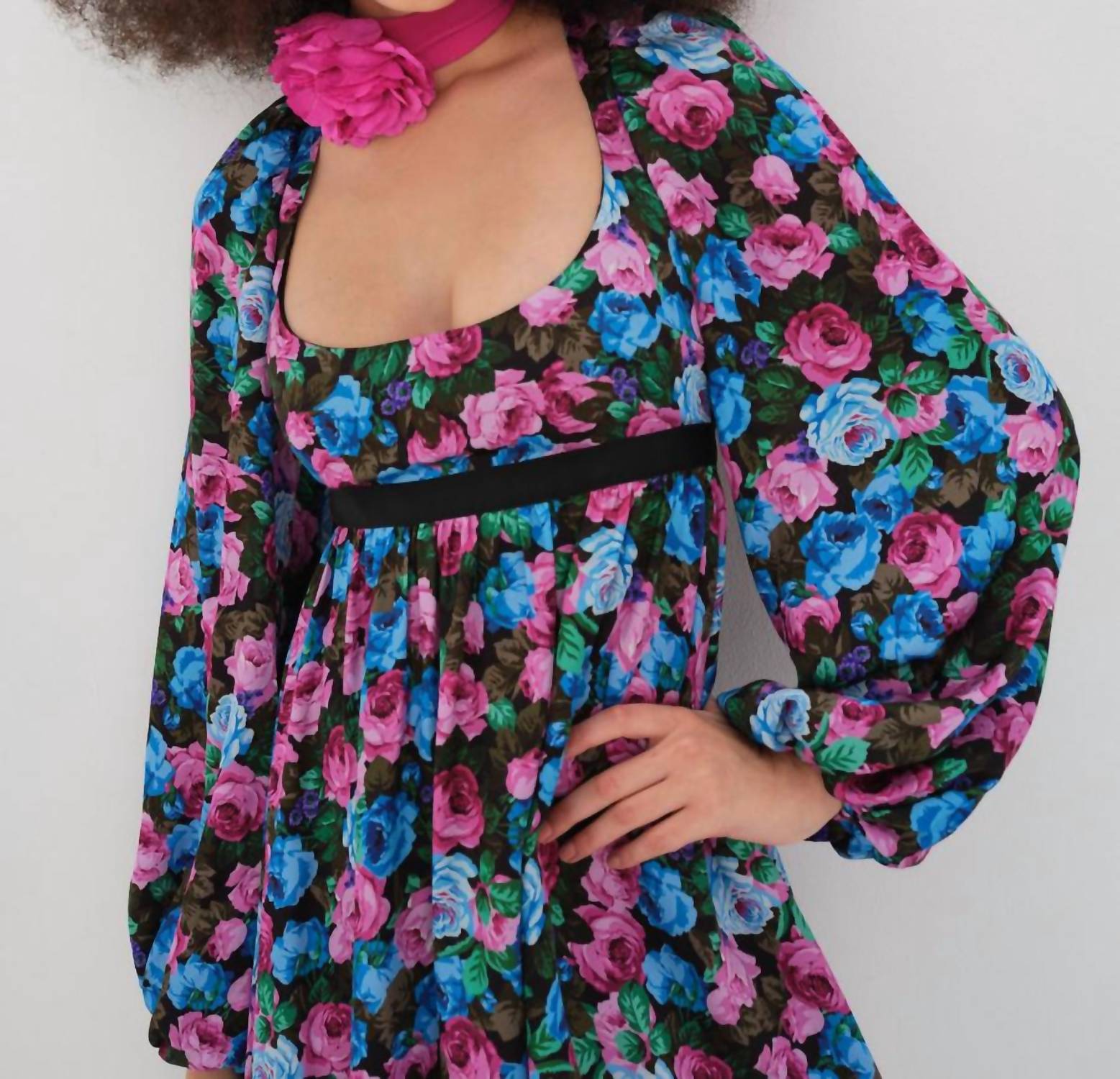 Introducing the Maggie Mini Dress by For Love & Lemons, a statement piece perfect for engagement occasions and Easter celebrations. This blue floral mini dress features long sleeves and an enchanting empire waist with a back tie closure for a flattering fit. Crafted from 56% Ecovero and 44% viscose, with a lining composed of 98% recycled polyester and 2% spandex, it embodies both elegance and eco-conscious design. For best care, dry clean only to maintain its boho chic style.