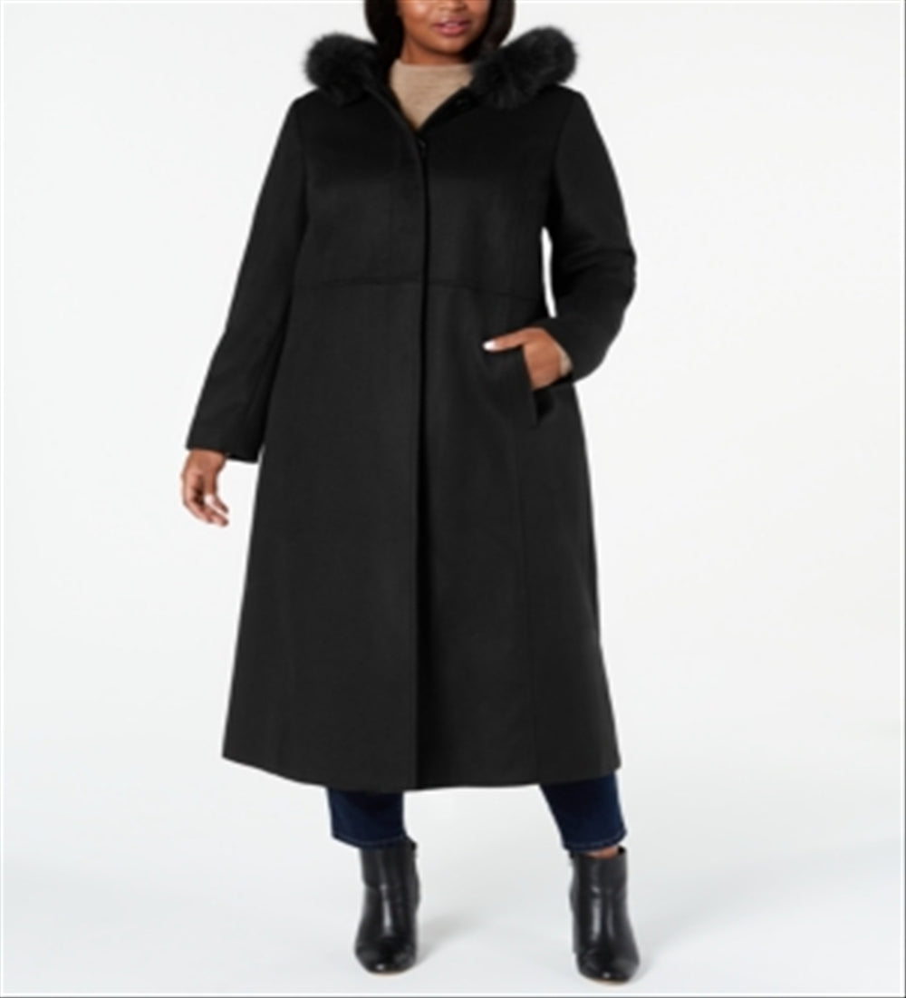 Forecaster Women's Plus Fox Fur Trim Hooded Maxi Coat Black Size 18W