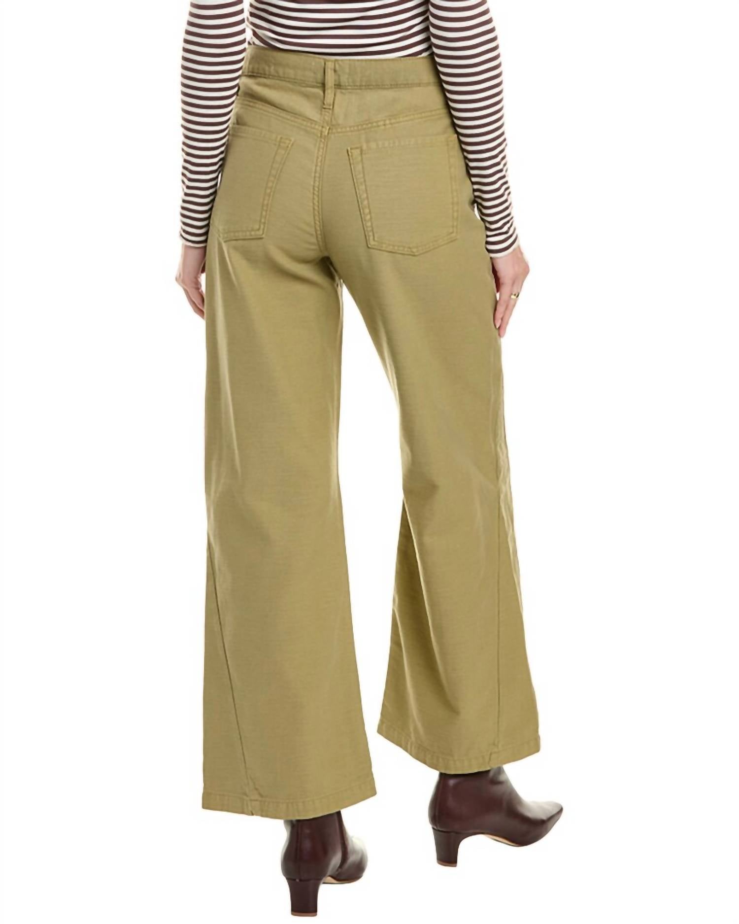 Pair these wide leg jeans with mules, slides or your favorite strappy sandals. Elevate your denim collection with the FRAME Le Baggy Palazzo Jean in a chic washed summer sage hue. Designed with European influences for a stylish yet casual vibe, these jeans feature an elegant palazzo style with an inseam of approximately 30 inches and a front rise of 11.5 inches. Crafted from 100% cotton, they include practical belt loops, godets at the hem, and a functional four-pocket design, closing with a secure zip fly with button closure. Ideal for any occasion, these jeans promise a fashionable look whether paired with heels or sneakers.