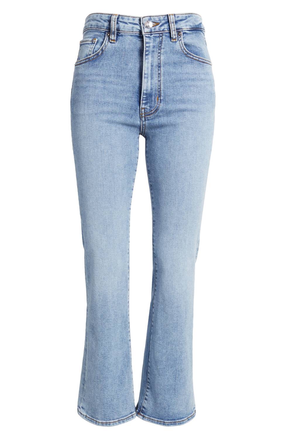 Comfortable and stylish, we love this cropped jean for all of the obvious reasons. Experience contemporary style with the FRAME Reboot High Waist Crop Flare Jeans in Lark, crafted for effortless flair. These jeans feature a relaxed fit with a high rise, boasting a cropped inseam of 27 inches that finishes in a flattering 17-inch flared leg. The ultra-stretchy cotton blend promises all-day comfort, composed of 49% Cotton, 21% Pre Consumer Recycled Cotton, 17% Post Consumer Recycled Polyester, 11% Lyocell, and 2% Elastane. Closure: Zip fly with button closure; Care: Machine wash cold. Perfect for elevating your 90s-inspired wardrobe and for standout looks at music festivals.