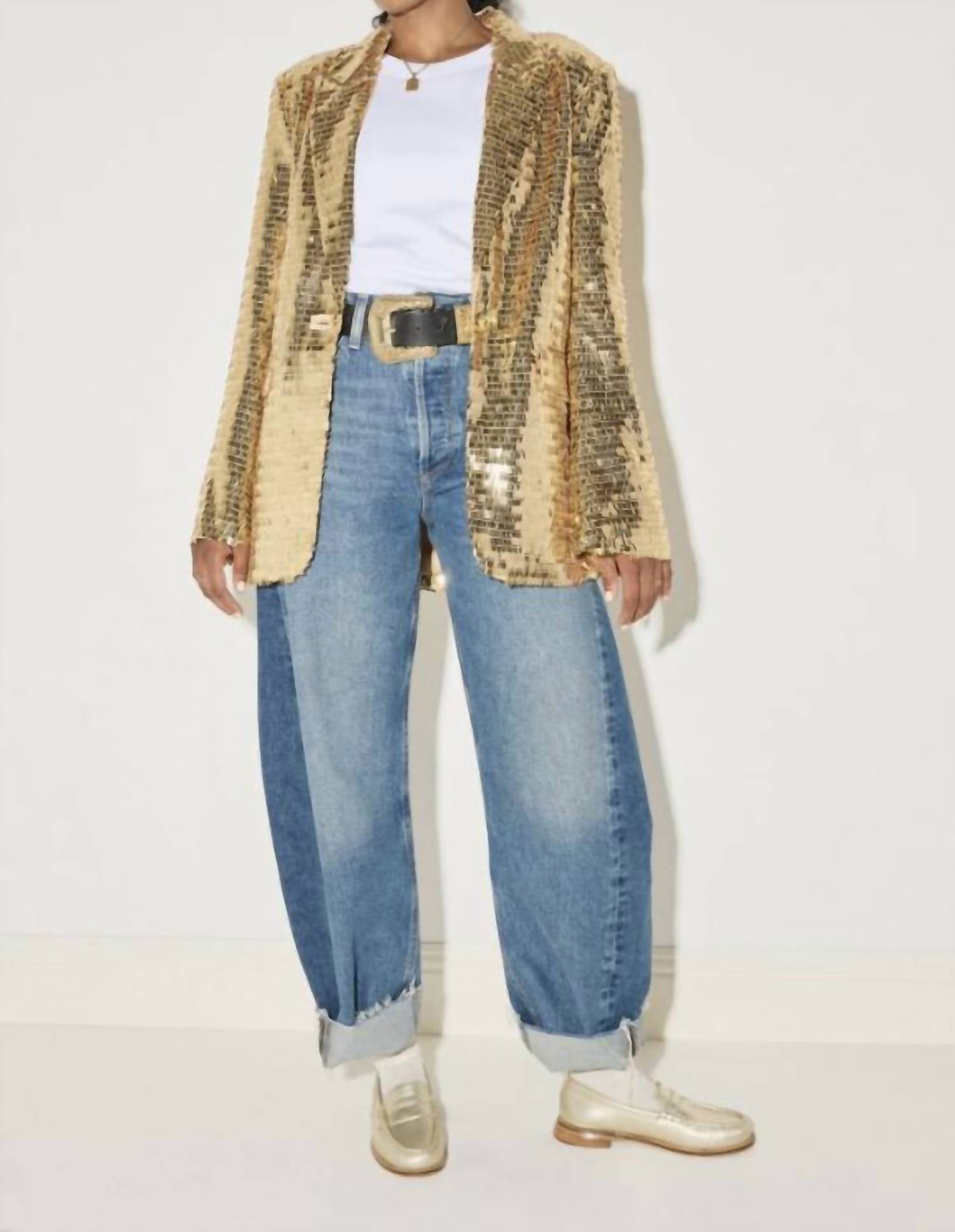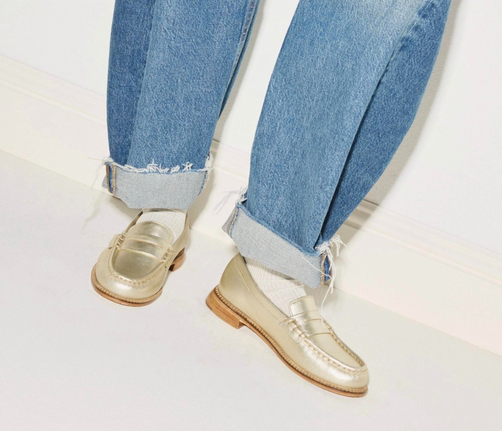 A classic loafer that is both comfortable and polished. Step into sophistication with the Women's Elba Penny Loafer by FREDA SALVADOR, crafted from 100% Italian leather in a striking gold hue. With a 0.75" angled heel and leather sole, these loafers blend timeless style with modern flair. Made in SV, they feature a leather and rubber split chip heel cap for added durability. Perfect for the fall season and holiday parties, these shoes fit true to size and naturally mold to your foot, becoming more comfortable with each wear.