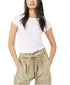 This classic, short sleeve tee will be your go-to staple this season and beyond.Crafted from 100% U.S. grown cotton. Timeless, fuss-free aesthetic. Classic baby silhouette. Slightly fitted with a cropped length. Flattering fit. Capped sleeves and Crew neckline. Exposed seaming and lettuce-edge trim. Raw hemlines. Made with at least 50% certified materials that are responsibly sourced. Runs small, so we recommend sizing up for a comfortable fit.