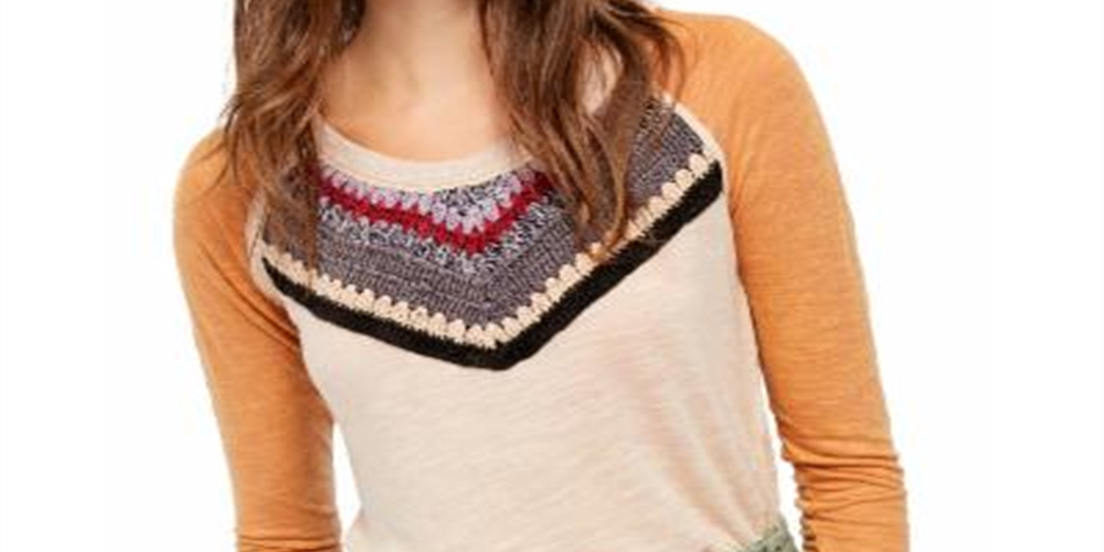 Free People Women's Knitted Front 3/4 Sleeve Crew Neck Top Brown Size Medium