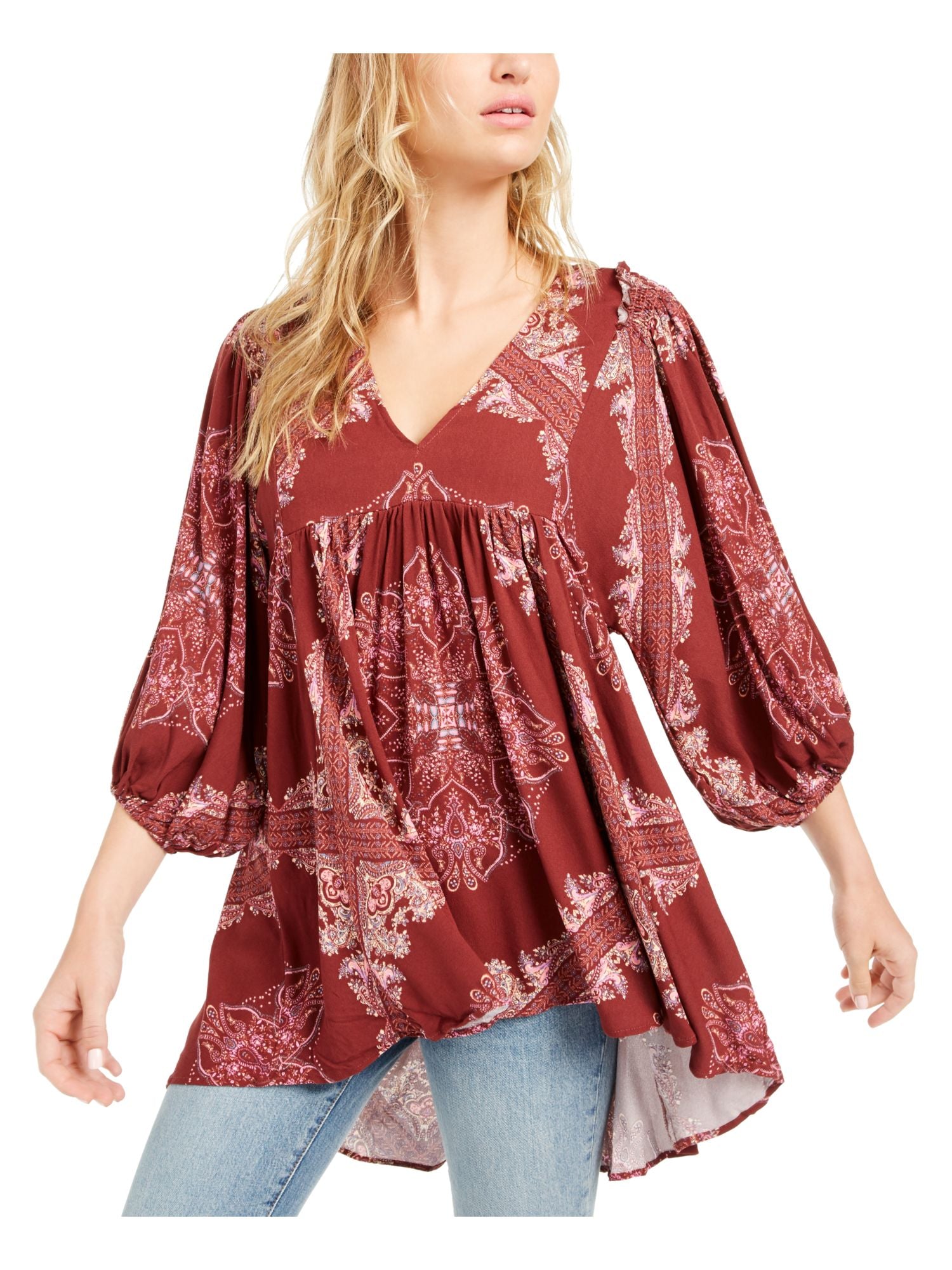 Free People Women's Paisley 3/4 Sleeve V Neck Top Size Medium