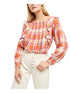 Free People Women's Ruffled Ruched Cut Out Plaid Long Sleeve Square Neck Top Pink Size Small