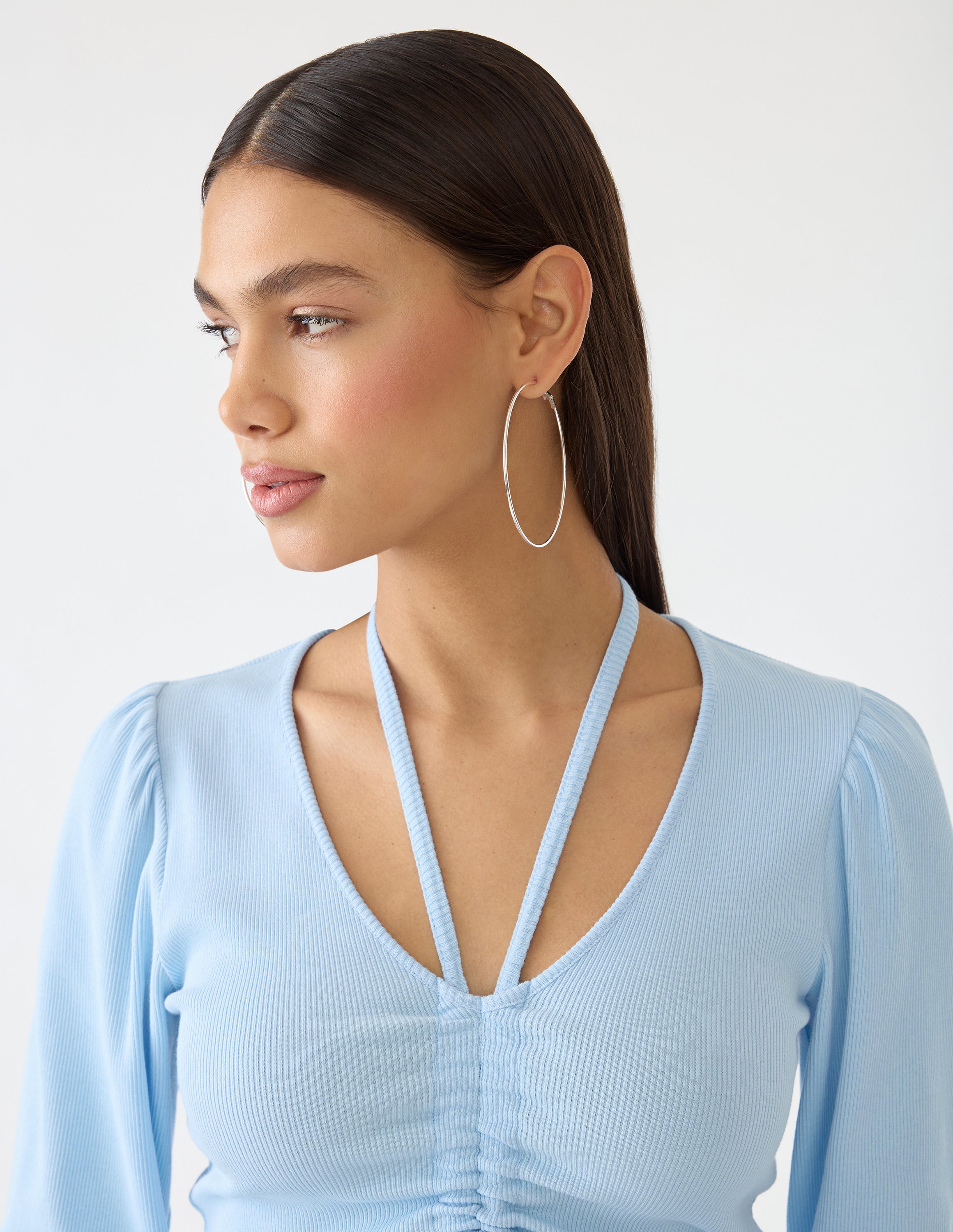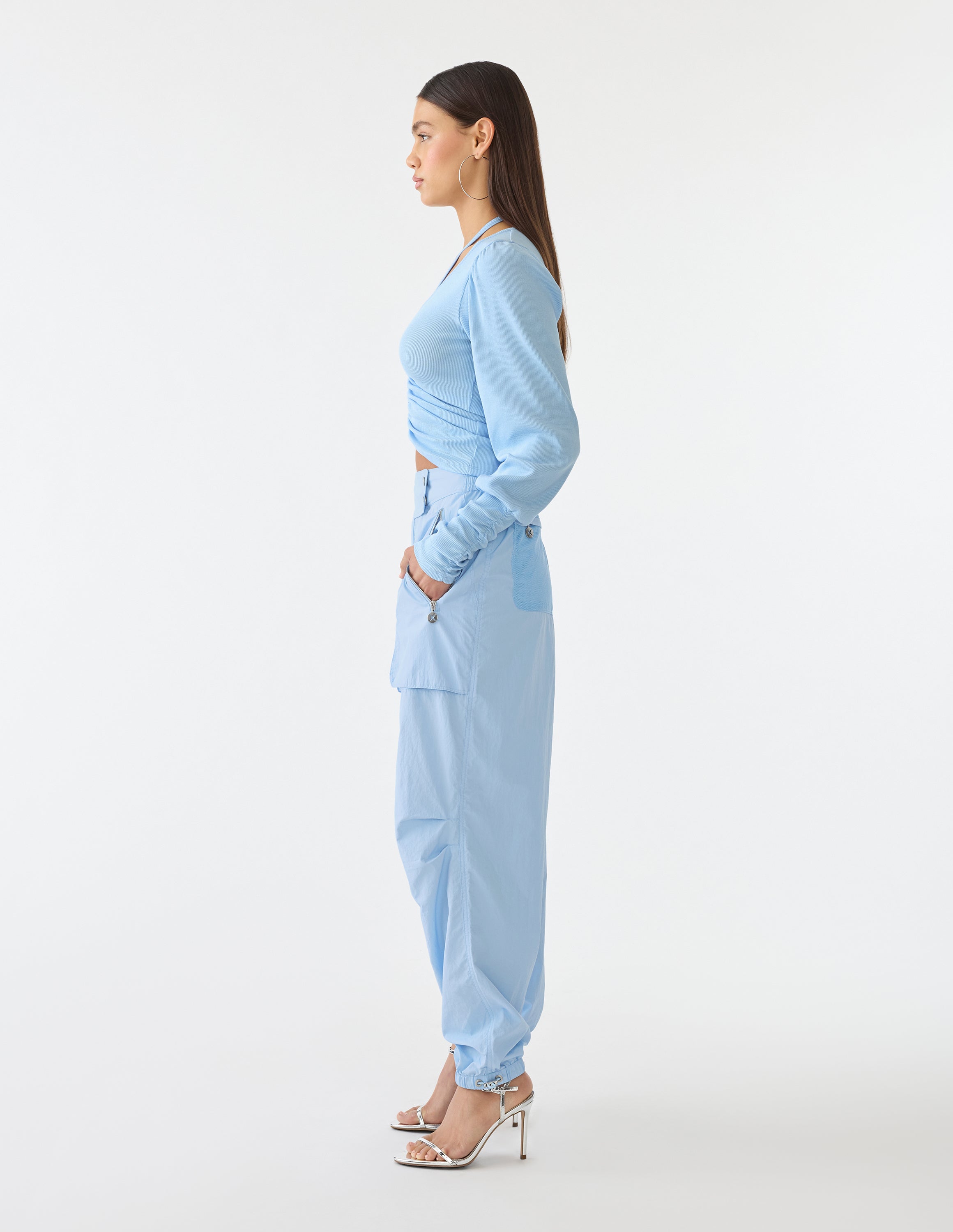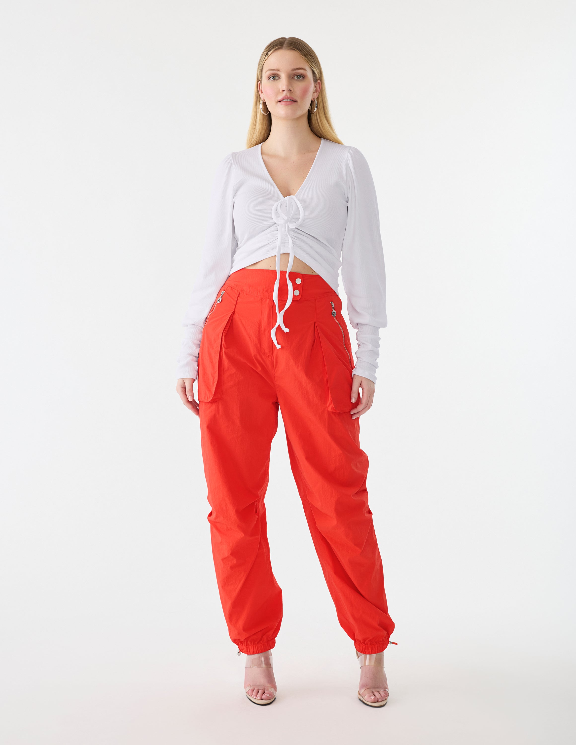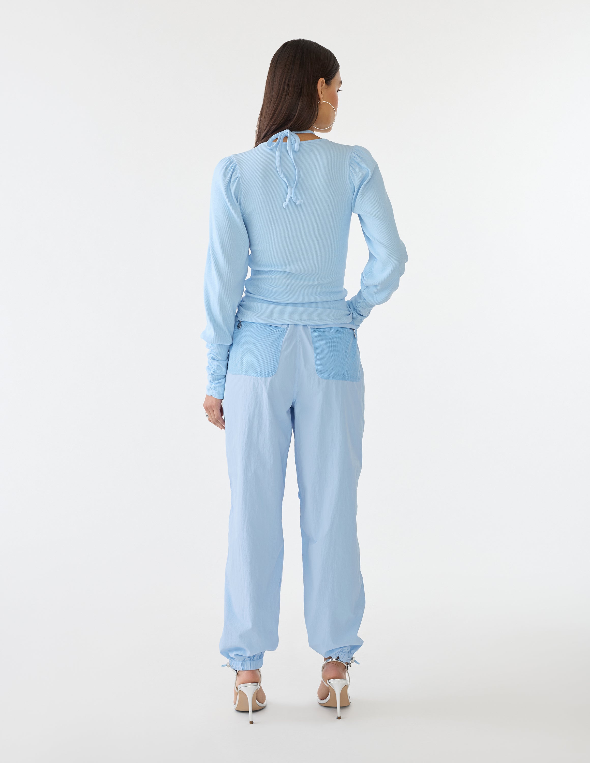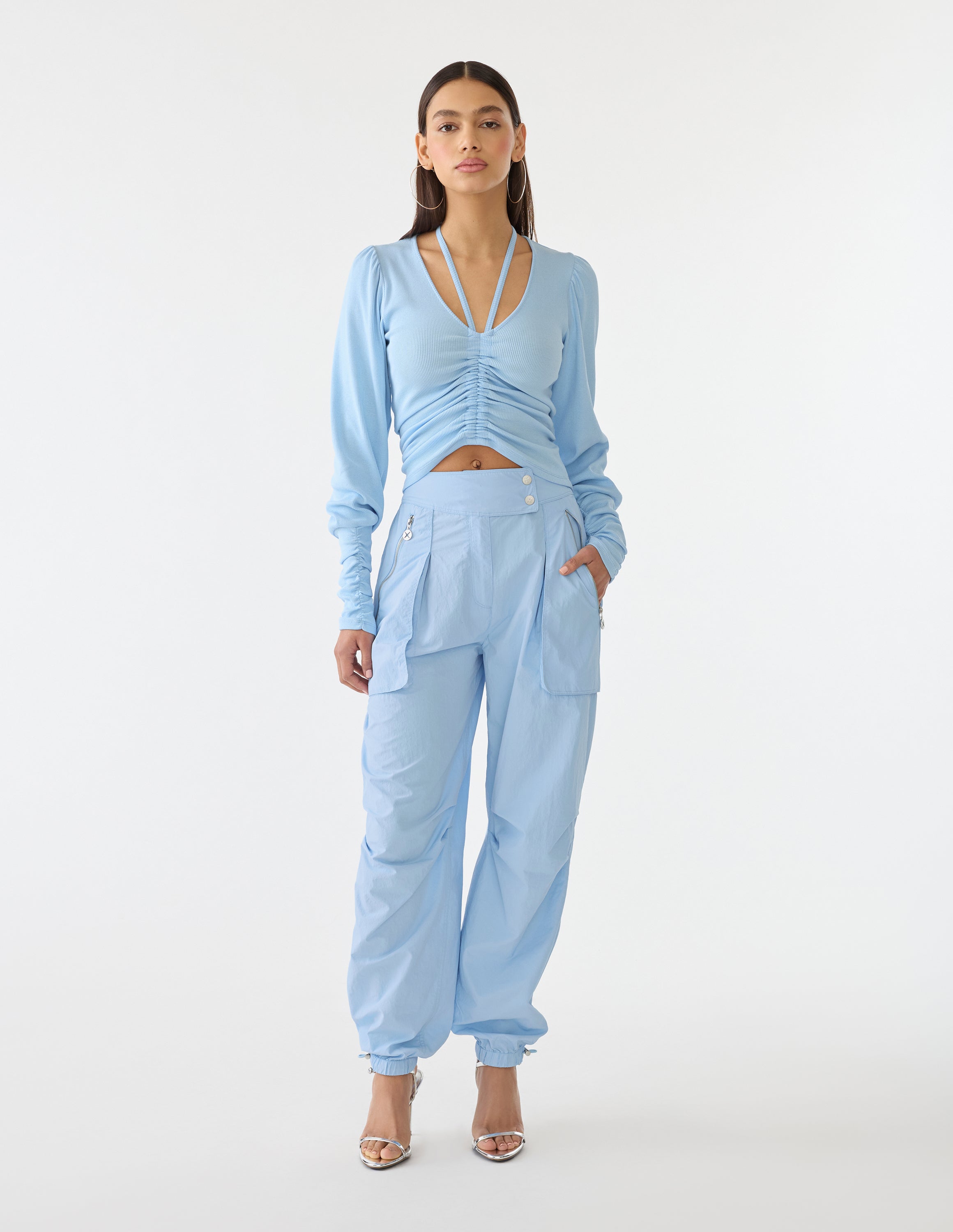 Drawstring Long Sleeve is effortlessly chic with a customizable touch. Crafted with luxurious fabric, this top features front drawstring detail and long puffed sleeves, adding modern versatility to your wardrobe essentials.