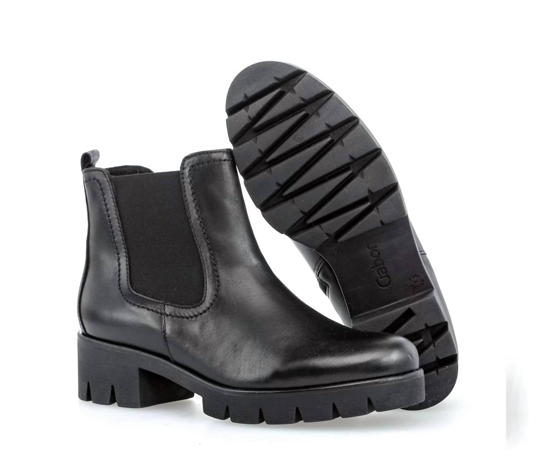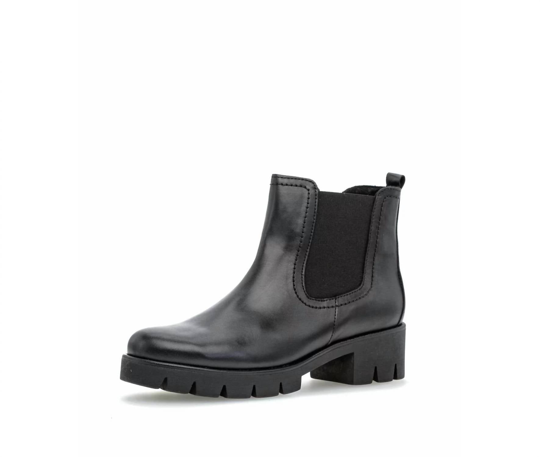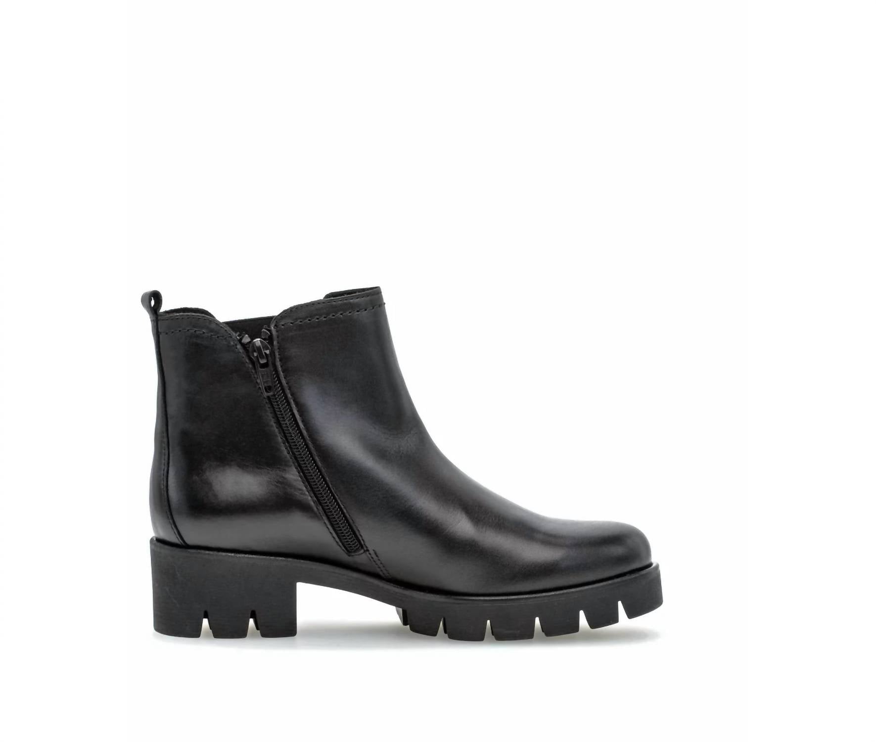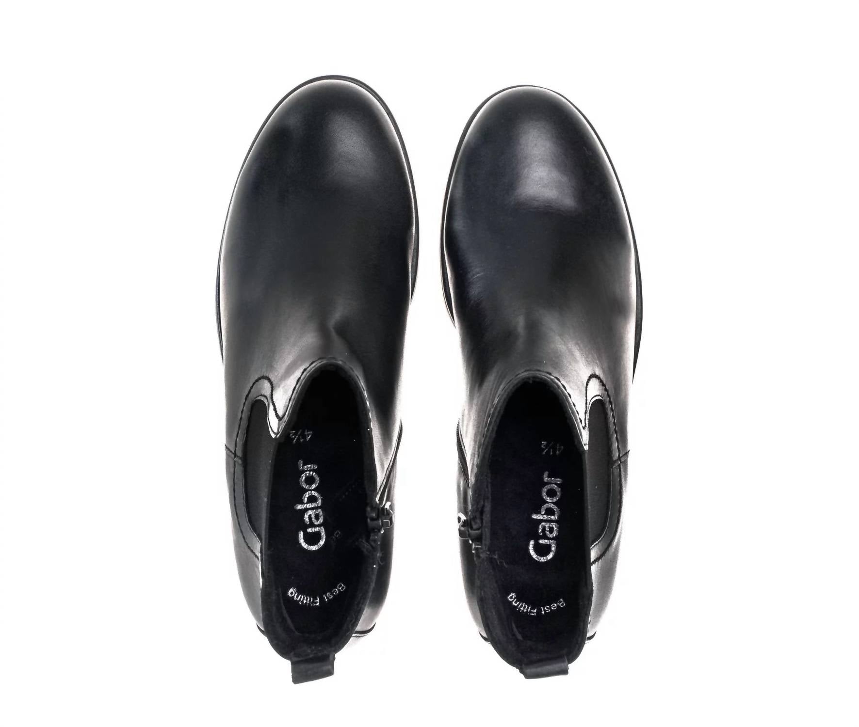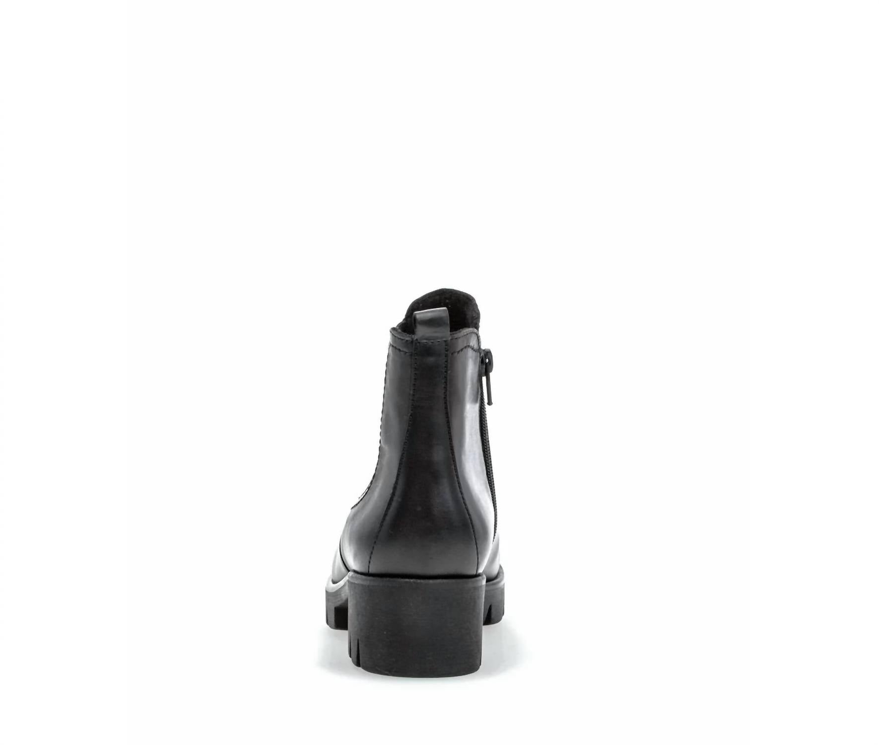Introducing the Women's Block Heel Leather Zip Bootie by Gabor Fashion, a perfect blend of style and comfort. Crafted from smooth leather with a textile lining, these elegant black booties feature a 5 cm block heel and a 13 cm shaft height, providing a chic look suitable for any dinner party or fall event. The design is finished with a convenient zipper closure and a round toe, ensuring a comfortable fit for medium-width feet. Ideal for workwear and special occasions, these versatile booties are a must-have for your autumn wardrobe.