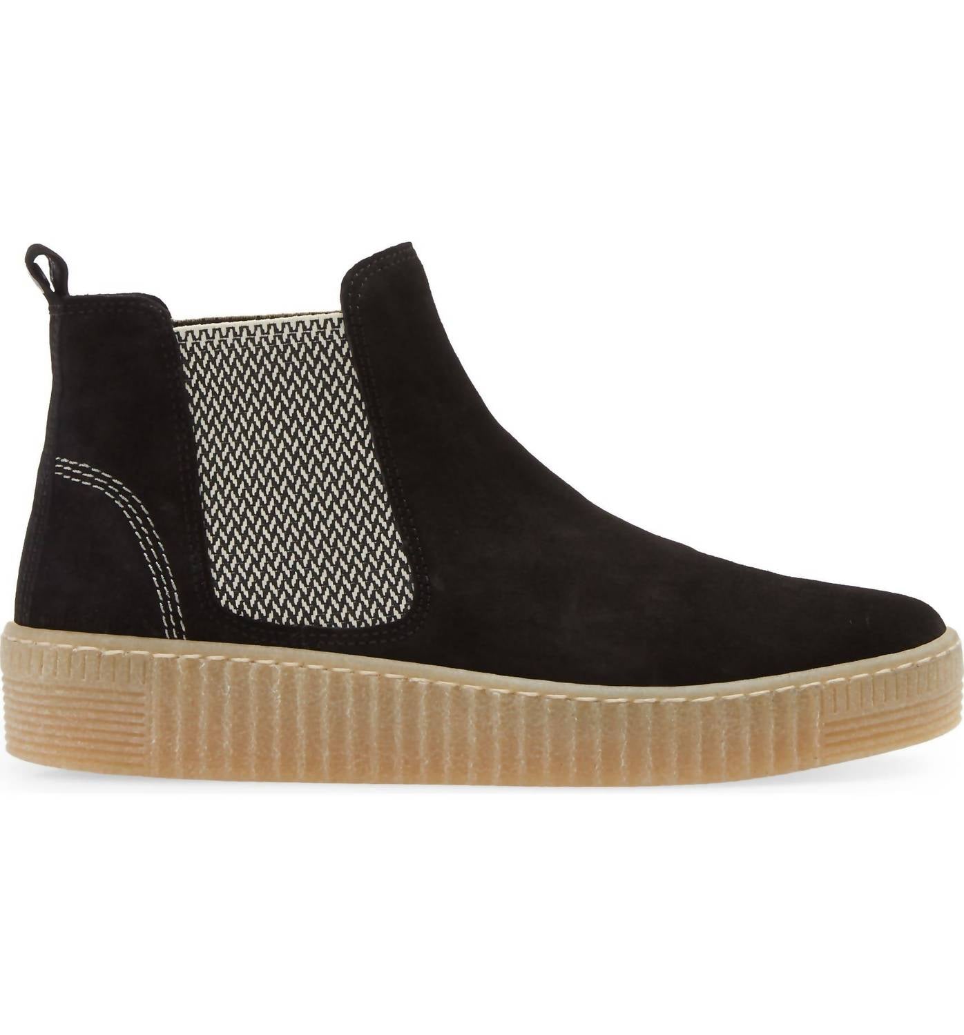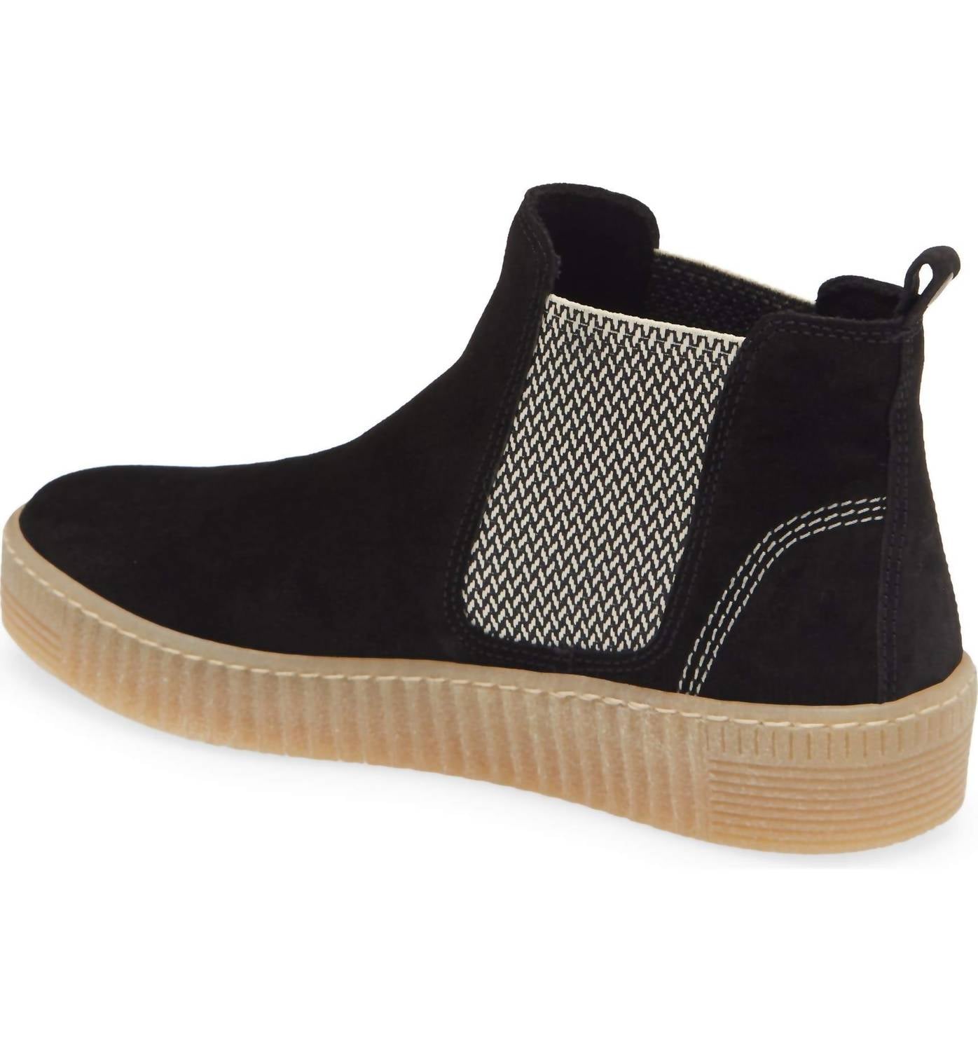 Discover the GABOR Women's Chelsea Bootie in timeless black, perfect for travel and workwear during the fall season. This bootie features a 4-inch shaft and a practical 1 1/2-inch heel paired with a 1-inch platform, providing stylish lift and comfort. With a pull-on style and a removable insole, it boasts a leather and textile upper, textile lining, and a synthetic sole for durability. Made for women, these versatile boots are imported and ideal for Thanksgiving events.