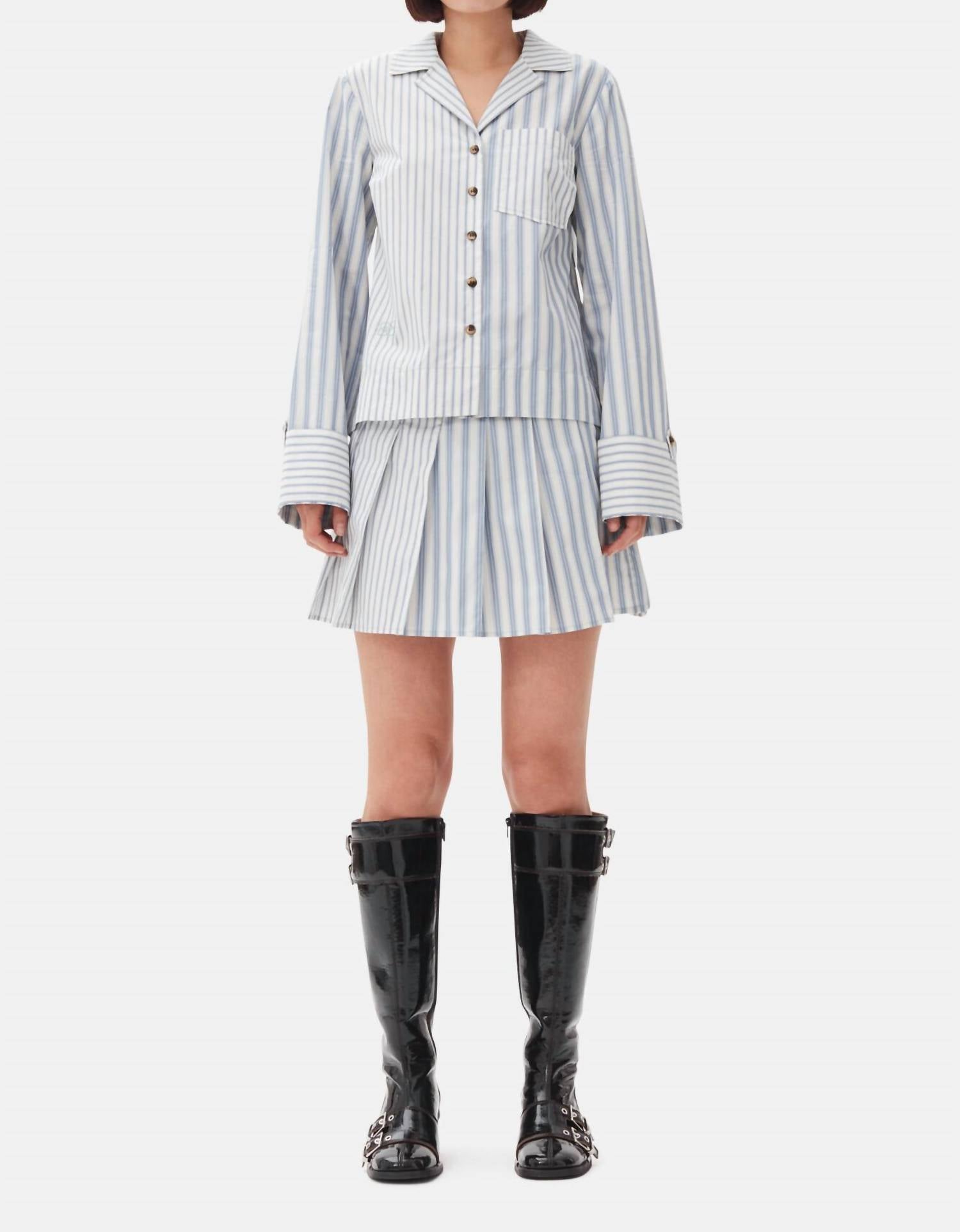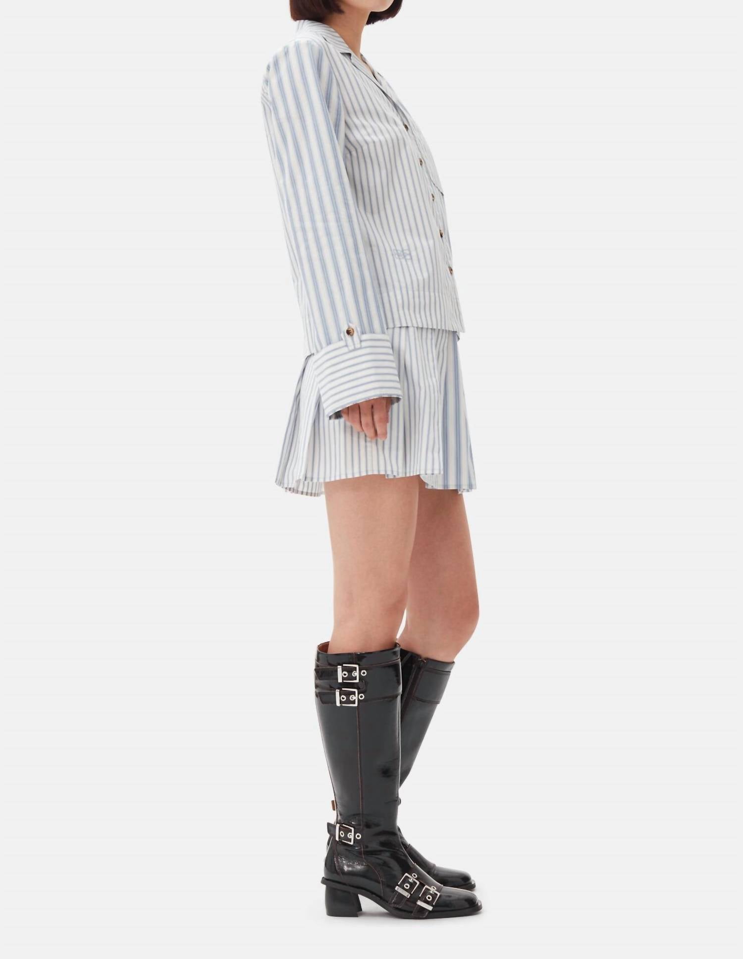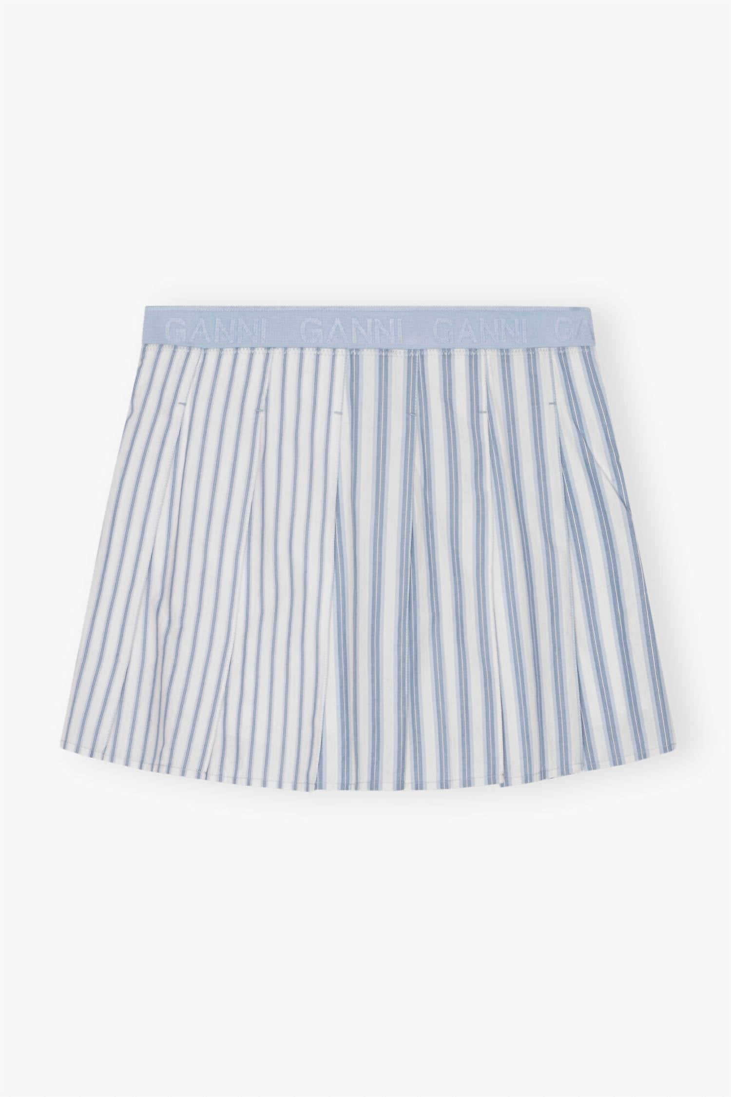 The perfect mini skirt does exist. Crafted from 100% organic cotton, offering a comfortable yet stylish choice for your wardrobe. Featuring a playful stripe pattern. Includes a pleated design and an elastic waistband adorned with GANNI logos for a secure fit. Designed for women who embrace spring trends, perfect for travel and workwear occasions. Machine wash.