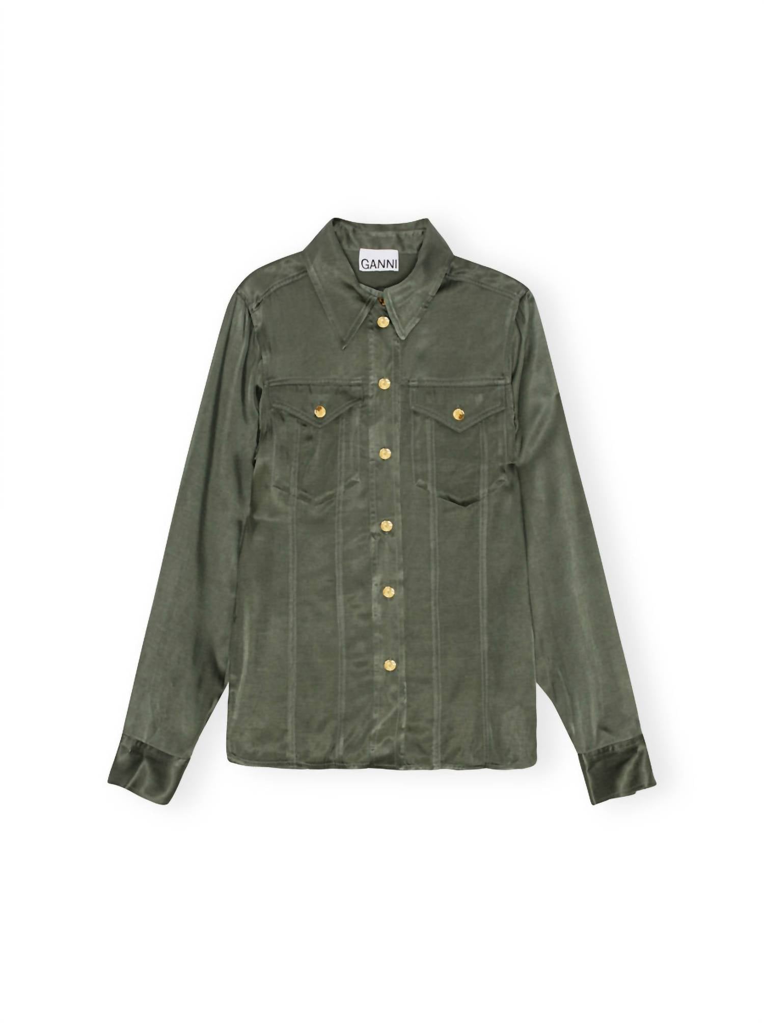 Climbing Ivy shirt features long sleeves with buttoned cuffs and front pockets for a sleek, functional design. Made from a luxurious blend of 50% Viscose and 50% Cupro. Promises comfort and elegance. With a classic button closure and collar. Maintains its timeless appeal. Care for this imported piece with a machine wash in cold water.