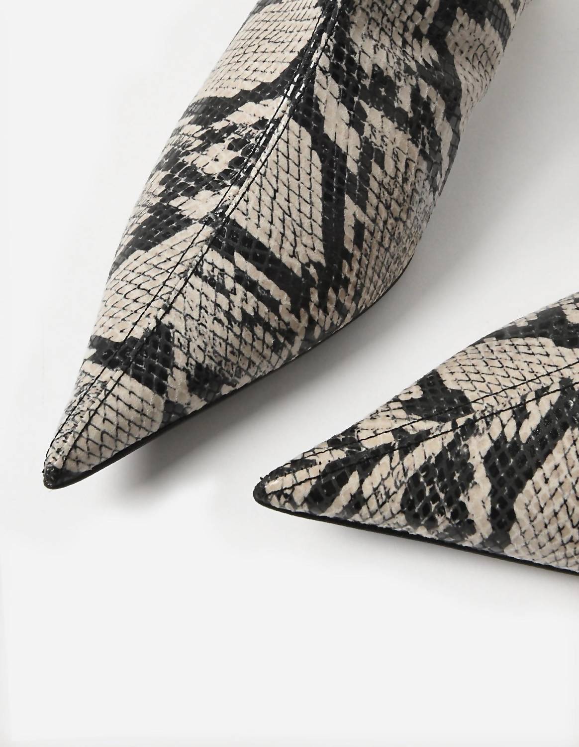 Meet the Women's Faux Snake Crop Ankle Boot by GANNI in an elegant sand color, designed to elevate your style with its chic appeal. Crafted from 100% polyester, these boots showcase a sleek faux leather fabrication and a pointed toe for a sharp look. Featuring a convenient back zip closure, a boot shaft height of 3.5 inches, and a sophisticated low kitten heel measuring 2 inches, these are the perfect complement to your wardrobe. Ideal for fashion-forward women, these ankle boots are both stylish and practical.