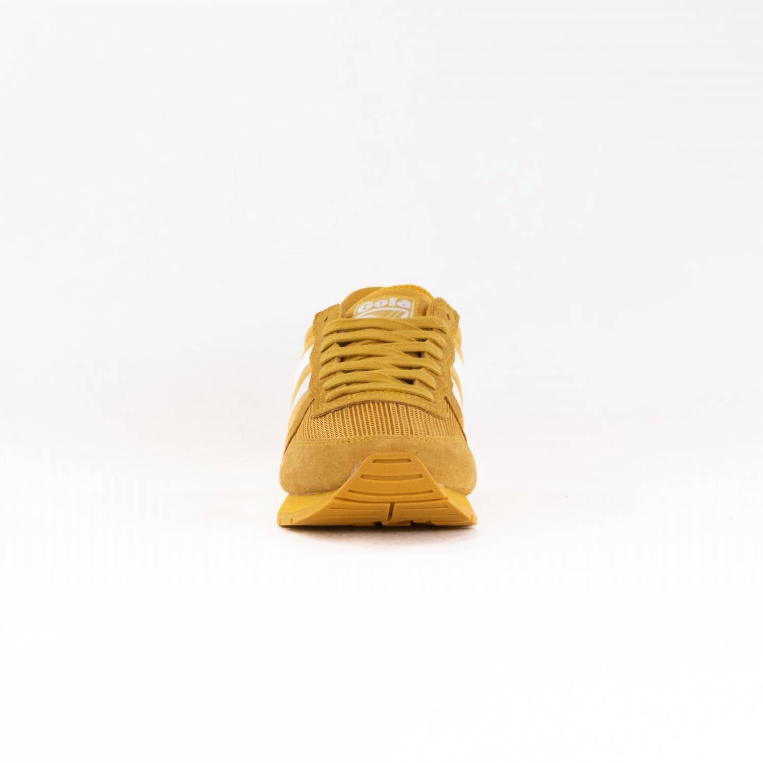Introducing the Women's Classics Daytona '88 Sneakers by Gola, a vibrant addition to your athleisure collection. This retro-inspired jogger combines a nylon, mesh, and suede upper in striking sun tones with a flat heel for ultimate comfort during fitness and workout occasions. The sneakers feature a medium width and round toe shape, complete with off-white Gola wingflash branding and a retro stripe through the oversized EVA midsole. Perfect for spring and Easter, these lace-up sneakers are a confident nod to Gola's heritage style.