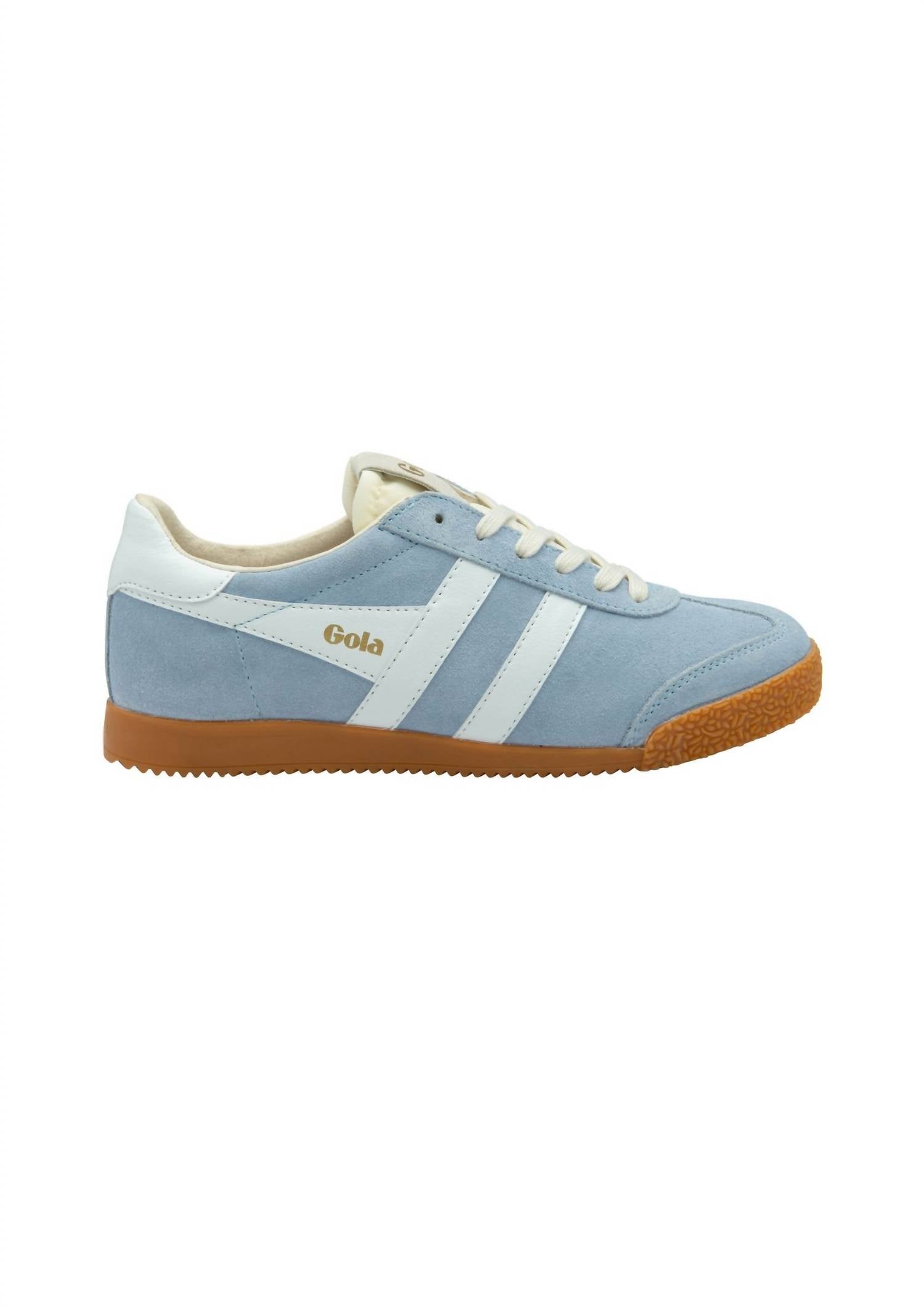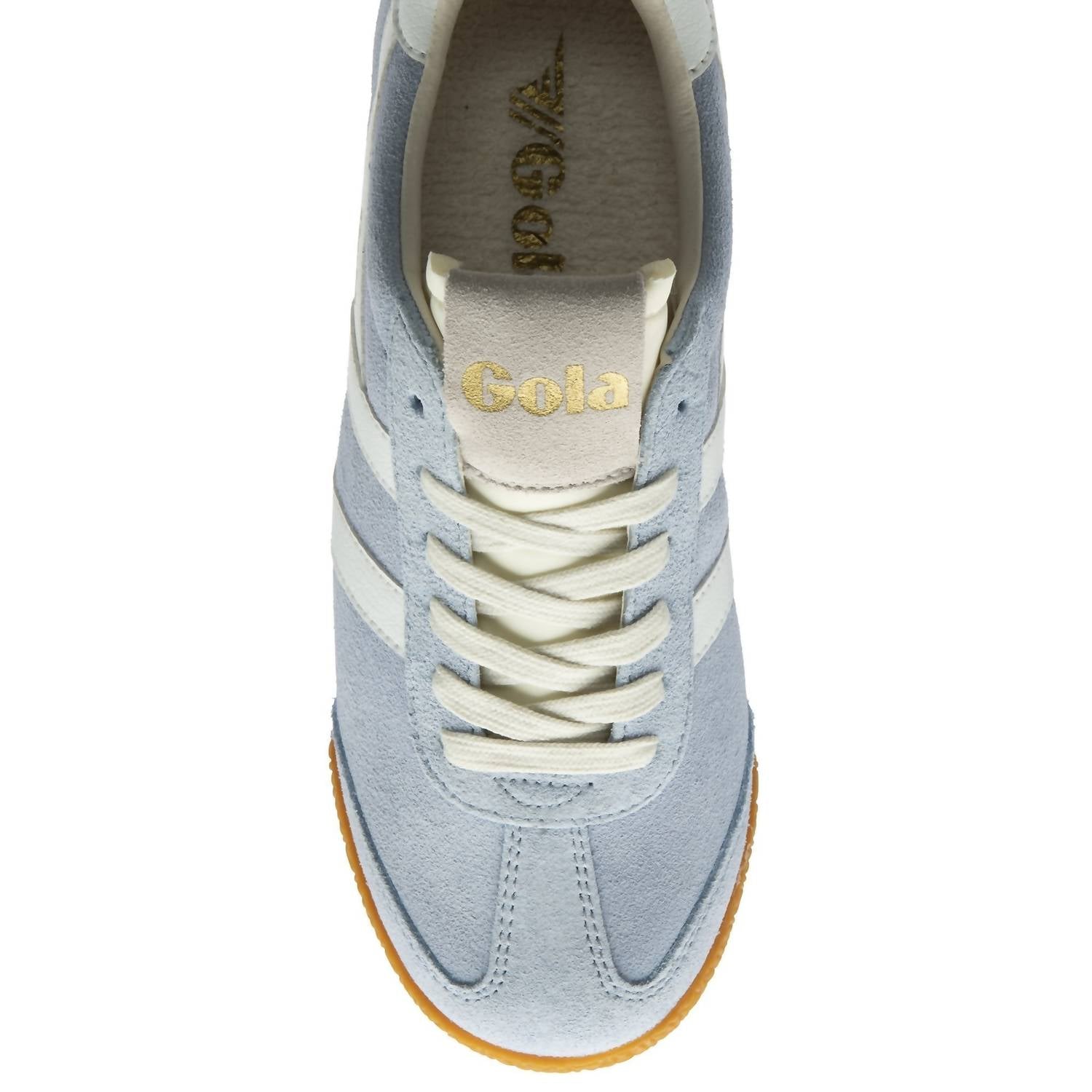 Get your daily steps in with these adorable sneakers. Elevate your sneaker game with the Gola Women's Elan Sneakers in this season's vibrant air/white colorway. These low-top court sneakers combine a throwback silhouette with colorful leather and suede, finished with a durable rubber sole. Originating from the classic court style with a lace-up design, they're perfect for summer streetwear and back-to-school occasions. Composition: Leather, suede, and rubber.
