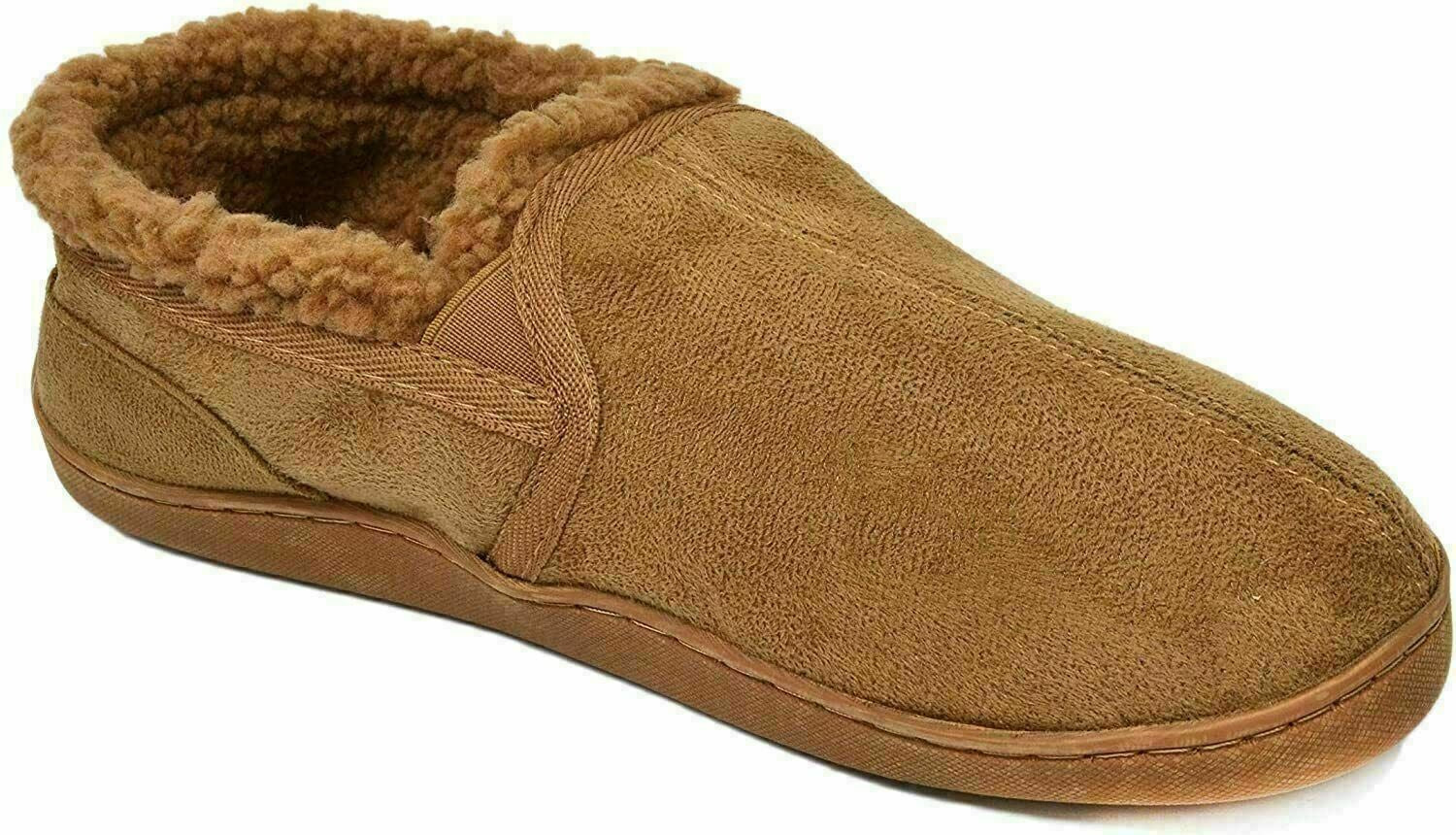 Gold Toe Men's Twin Gore Faux-Suede Slippers Dark Beige Size Medium