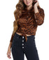Guess Women's Cherlynn Collared Long Sleeves Button Down Top Brown Size Medium