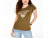Guess Women's Crew-Neck Metallic-Graphic T-Shirt Green Size XS