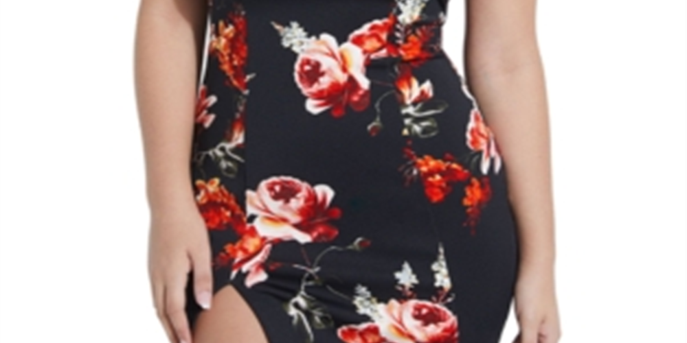 perfect for date night| this guess dress updates a bold floral print with a twisted neckline and dramatic front slit.| off-the-shoulder neckline| pull-on styling| slit at front| polyester/elastane/spandex