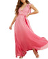 Step out in a show-stopping look with this flowing GUESS dress styled in a dreamy ombré design and finished with a tie belt for a cinched silhouette. | Approx. 53 long from center back neck to hem | Fitted through the chest and waist; flared and flowing skirt| Deep V-neck; Fit & flare silhouette | Hidden side zipper| Ruffled short sleeves