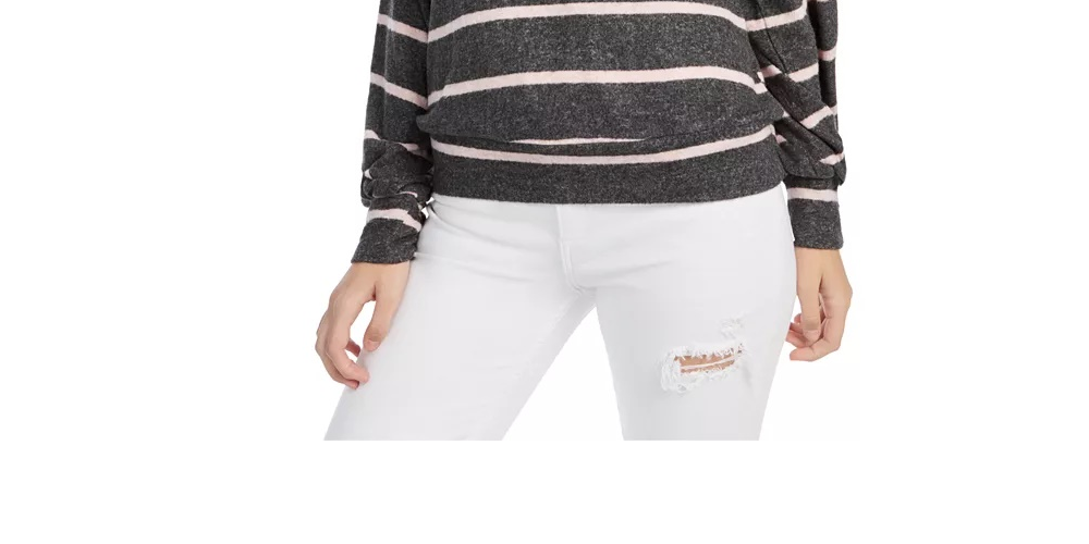 Gypsies & Moondust Junior's Cozy Striped Dolman Sleeve Top Pink/Grey Size X-Large