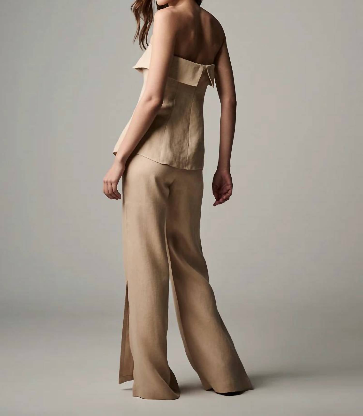 Pair this with your favorite jeans and slides for your next girls night out. Introducing the Addison Off-shoulder Top by Hevron, a sophisticated piece for any summer wardrobe. This strapless top in a solid wheat hue is crafted from 100% soft-to-touch hemp and features a flattering peplum style overlay. Designed with a low-waisted hemline and a zip closure, it offers a sleek and modern silhouette. Care is simple with machine wash and line dry instructions, ensuring easy upkeep for summer outings.