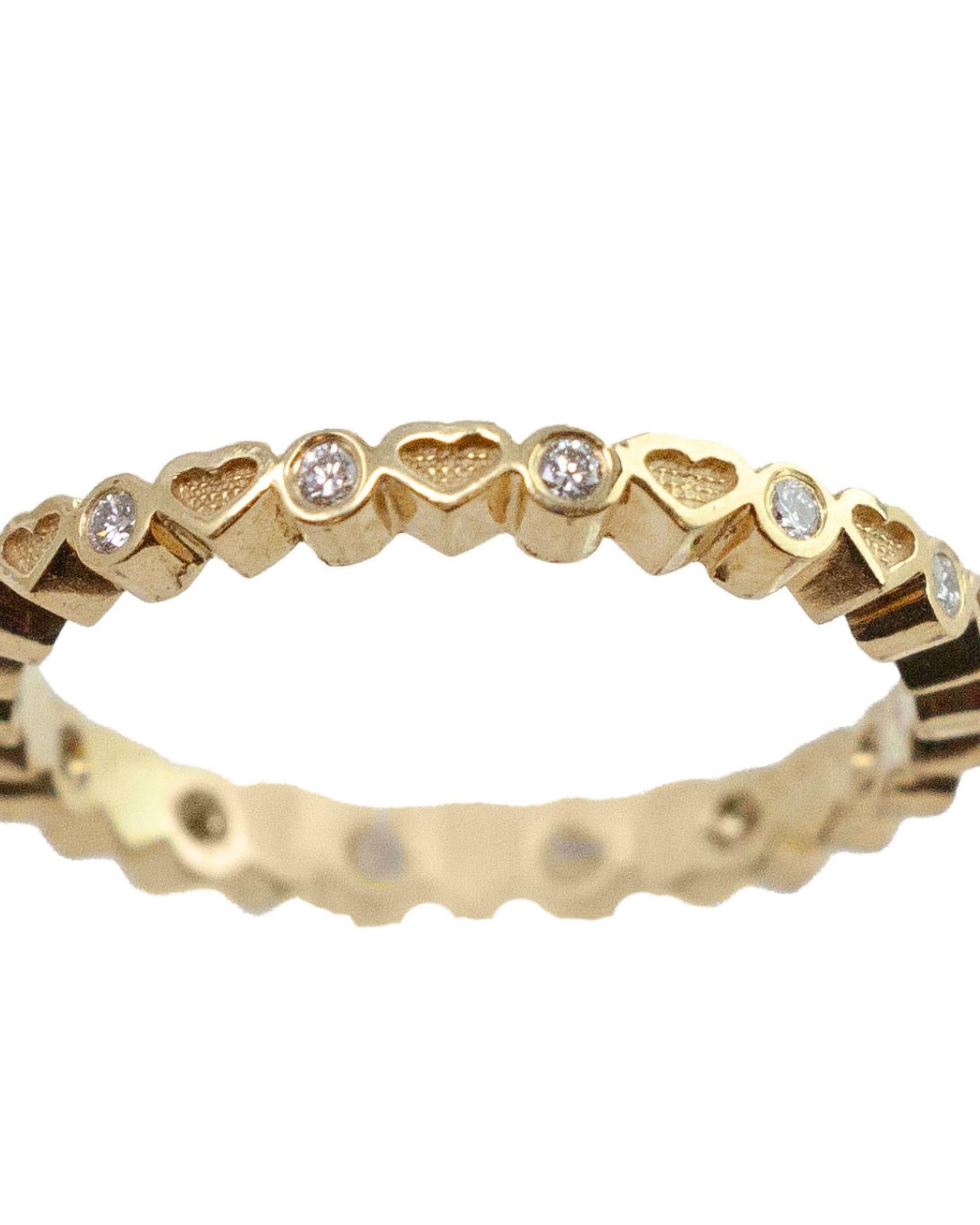 Wear this ring stacked or by itself... you can't go wrong. Adorn your fingers with elegance with the Women's Heart Band Ring by Hidalgo. This exquisite piece is crafted from 18k yellow gold, showcasing a stunning heart design adorned with white diamonds. A perfect choice for fashion jewelry enthusiasts, this ring embodies sophistication and charm. Indulge in the timeless allure of gold, ideal for any occasion.