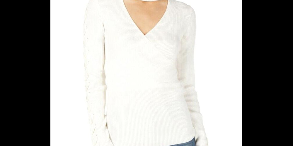 Hippie Rose Junior's Choker Neck Ribbed Sweater White Size M