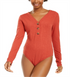 Hippie Rose Junior's Rib Knit Henley Bodysuit Red Size Large