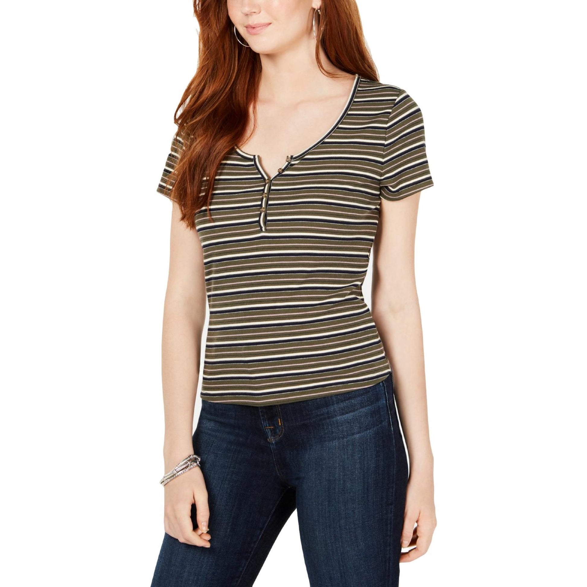 Hippie Rose Women's Juniors Knit Ribbed T-Shirt Black Size Small
